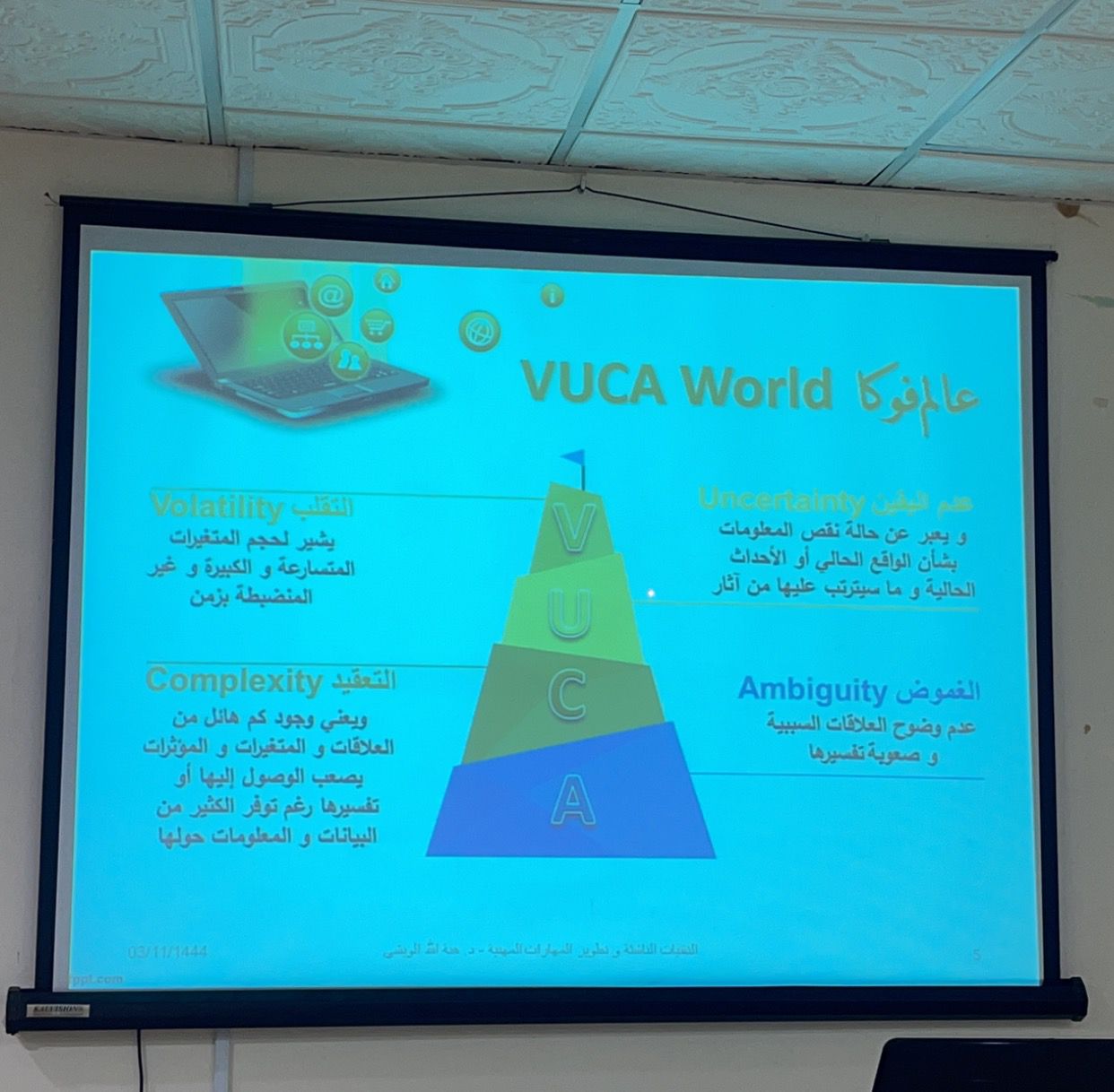 تحت إشراف واهتمام سعادة المدير التنفيذي للكلية التطبيقية بحوطة بني تميم د. بيان بنت إبراهيم السيف قدم قسم التدريب و التأهيل بالكلية التطبيقية (فرع حوطة بني تميم )دورة تدريبية بعنوان "التقنيات الناشئة و تطوير المهارات المهنية" إعداد و تقديم المدرب المعتمد د. هبة الله أحمد الويشي الأثنين 2/11/1444 الموافق 22/5/2023 في تمام الرابعة عصراً بالمقر النسائي لجمعية الدعوة و الإرشاد بحوطة بني تميم.
