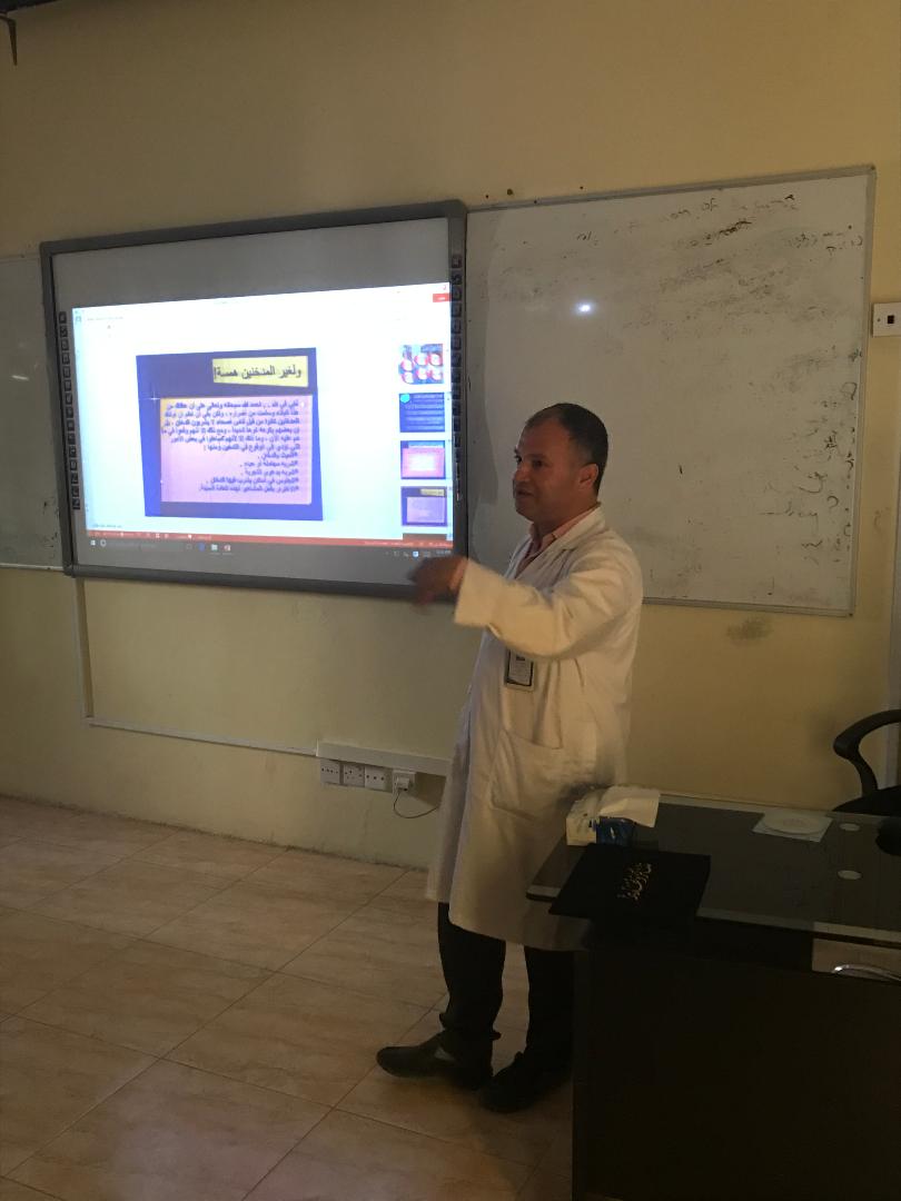 في إطار اليوم العالمي لسرطان الثدي نظم نادي ريادة الأعمال بكلية المجتمع بالخرج بالتعاون مع مركز صحي السيح محاضرة عن "اضرار التدخين وعلاقتها بمرض السرطان" وذلك يوم الأحد الموافق 5/2/1440هـ لسعادة الدكتور/ على سالم عايش طيب الأسرة وصحة المجتمع بمستوصف صحي السيح وقد أشارة سعادته إلى أن التدخين بكافّة أشكاله كالسجائر، والأرجيلة من المُمارسات الضارّة بالصحة، والبيئة؛ فهو يُسبّب العَديد من الأمراض للمُدخّن وللمُحيطين به، ويُسبّب تلوُّث البيئة، كما يضرّ بميزانيّة الفرد، ويرفع تكاليف الرّعاية الصحيّة، ويُعيق التنمية الاقتصادية. تُشير دراسات مُنظّمة الصحّة العالمية إلى أنَّ التدخين يُسبّب حوالي (6) ملايين حالة وفاة سنوياً، وأكثر من (83%) منها تنتج عن التدخين المباشر، في حين أنَّ أكثر من 16% من حالات الوفاة تنتج عن التدخين السلبي.. وقد أشار إلى أن من أهم أضرار التدخين أنه يؤدي إلى اضطراب في توزيع الدم، والإصابة بهشاشة العظام، ورائحة كريهة بالفم، والإصابة بقرحة المعدة، وضعف التركيز ونقص النشاط، وزيادة الاصابة بأمراض القلب والسرطان، كما أكد على أن الاقلاع عن التدخين يتطلب ضرورة وجود إرادة قوية لدى المدخن، وممارسة الرياضة، والابتعاد عن المدخنين والعادات السيئة.