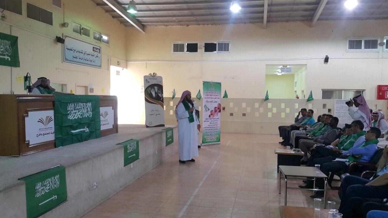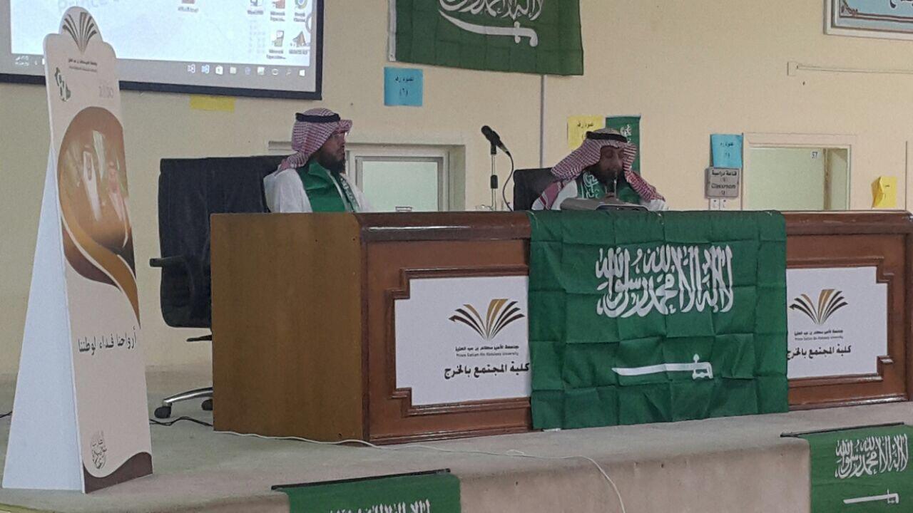 نظمت وحدة النشاط الطلابي بالكلية يوم الثلاثاء الموافق 6/1/1439هـ احتفالية باليوم الوطني الـ(87) بعنوان" الوطن إنتماء وولاء" وشارك في الاحتفالية كل من سعادة الأستاذ الدكتور /سعيد بن نزال العنزي عميد الكلية ، وسعادة الدكتور /ناصر الشيحان وكيل الكلية للشؤون التعليمية والأكاديمية. كما قدم سعادة الدكتور/ ياسر الهبول "فيلم توثيقي لتاريخ توحيد المملكة" خلال المراحل المختلفة وتناول الدكتور/ خلال العبيلي عن أهم الإنجازات التى شهدتها المملكة خلال الفترة الأخيرة وإلقاء الضوء على رؤية المملكة (20-30) وما تتضمنه من جوانب مخلفة للتنمية.