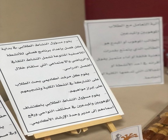 تحت رعاية سعادة وكيلة الكلية الدكتورة / أمينه عبد الرحمنالمشحن. أقامتالكلية خلال الفترة من 11-15/5/1439هـ الأسبوع التعريفي للطالبات المستجدات حيث نظمت وحدة العمل الطلابي بالتعاون مع وحدة الإرشاد الأكاديمي استضافةللدكتورة / اديل سليمان وهيبي من الوحدة الإشرافية لكليات البنات يوم الاثنين الموافق 12/5/1439هـ لعقد ورشة عمل عن الإرشاد الأكاديمي وذلك لتهيئة الطالبات المستجدات وتعريفهن بحقوقهن وواجباتهن بما يسهم في رفع مستوى الوعي لديهن كما تم عمل ركن تعريفي للطالبات المستجدات في الكلية لتوعيه الطالبات وتثقيفهن أكاديميا وعلميا. كما تم في يوم الخميس الموافق 15/5/1439هـ عقد لقاء تعريفي للطالبات المستجدات بحضور وكيلة الكلية ووكيلات الأقسام في الكلية حيث بدأ اللقاء بآيات من القران الكريم ثم تلاها كلمة لوكيلة الكليةالدكتورة /أمينه عبد الرحمنالمشحن. رحبت فيها بالطالبات المستجدات وحثتهن على بذل الجهد لتحقيق النجاح والتفوق بإذن الله وتمنت لهن التوفيق والسداد في مسيرتهن العلمية ثم تلاها كلمة الأخصائية الاجتماعية في الكليةالأستاذة / افنان فهد الرفاعي حيث وضحت لهن دور الأخصائية الاجتماعية وأن الطالبة مرحب بها في أي وقت لمساعدتها في حل أي قضيه أو مشكله تواجهها من الناحيةالصحيةوالاجتماعيةوالسلوكية ثم تلاها كلمه وكيلة قسم الحاسب الآليالأستاذة / ناهد أبو زيد وضحت فيها بعض النقاط الهامه التي تخص الطالبات منها الحضور والغياب وسياسة التحويل وغيرها.ثم تلاها كلمة وكيلة قسم إدارة الأعمال الأستاذة / ابتسام العنزي. رحبت فيها بالطالبات وعرفت بالقسم بشكل مختصركما حثت الطالبات علىضرروه مشاركتهن في الأنشطة التي يقيمها القسم وكذلك أشتمل اللقاء على كلمات لبعض الطالبات وضحن فيها تجربتهن في أقسام الكلية.وانتهى اللقاء بالرد على استفسارات الطالبات وقد حازت فعاليات الأسبوع على رضى واستحسان الطالبات وشهدت الفعاليات حضور عدد كبير من الطالبات.