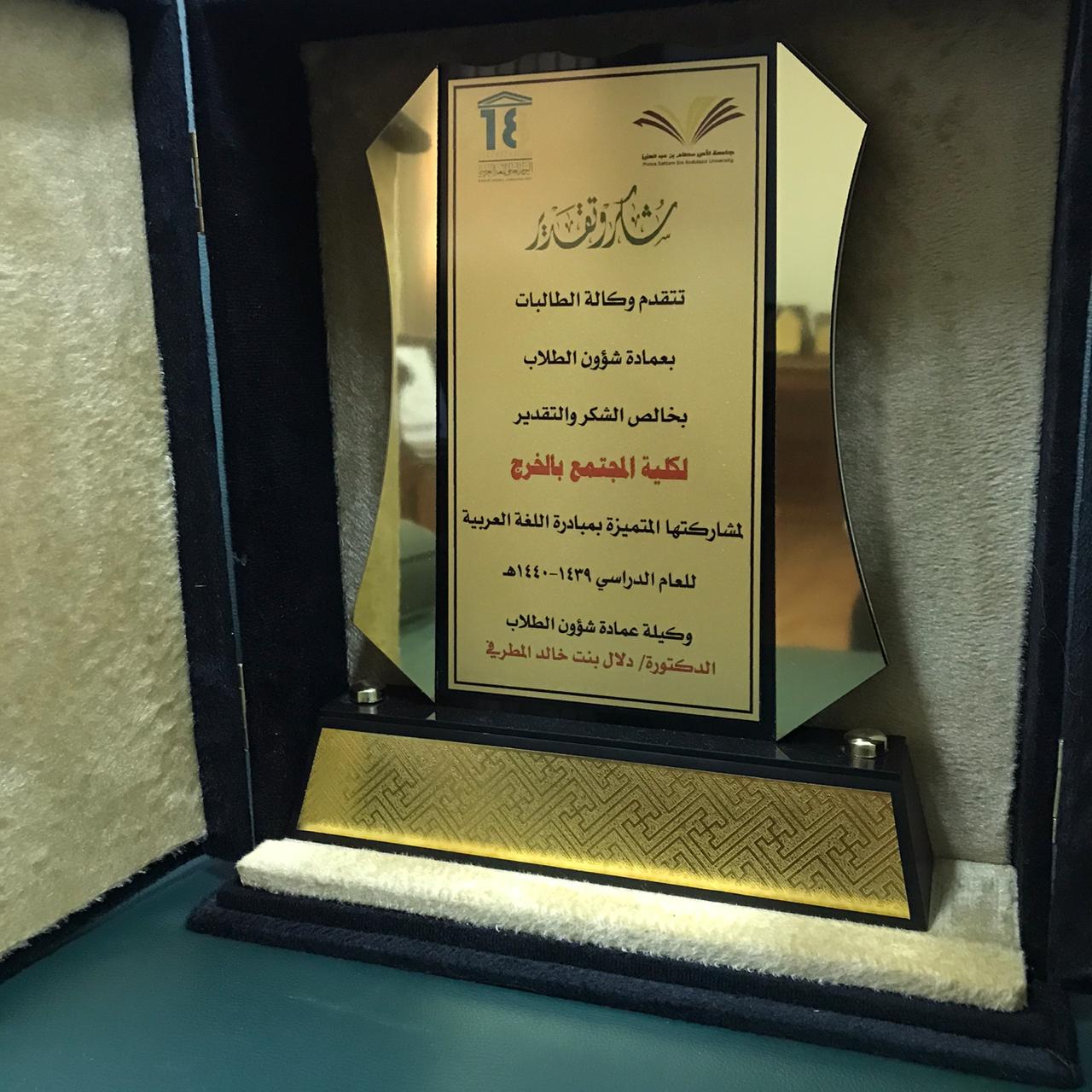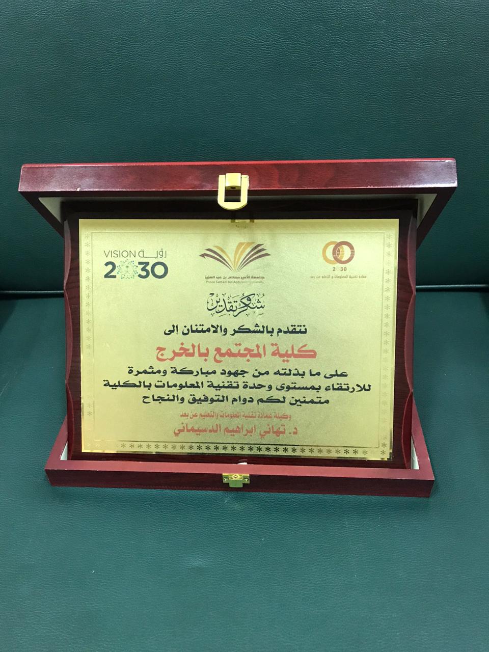 وكيلة الجامعة لشؤون الطالبات تتسلم التقرير السنوي لكلية المجتمع بالخرج .