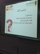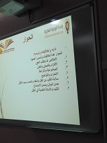 برعاية سعادة وكيلة كلية المجتمع بالخرج الدكتورة/ أمينة بنت عبد الرحمن المشحن. وبإشراف منسقة وحدة التوعية الفكرية بالكلية الأستاذة/ رفيدة قمر الدولة محمد. وبالتعاون مع وحدة التوعية الفكرية بجامعة الأمير سطام بن عبدالعزيز, وضمن فعاليات مشروع نحو جامعة واعية 3. استضافت الكلية الدكتورة/ فتحية سالم الحكمي.  يوم الأثنين الموافق 27/6/1440هـ لإقامة حلقة نقاش بعنوان "الحوار وأثره في تحقيق الأمن" وقد بدأ اللقاء طالبات الكلية ببرنامج إبداعي ومعرض شمل مجموعة من الأركان  ( ركن الوطن - لا للمخدرات - التوعية الفكرية - الأمن الفكري - التطرف والإرهاب ) تجول فيه الحضور واستمعوا لشرح وتعليق الطالبات . بعد ذلك ابتدأت الدكتورة فتحية في  طرح محاور حلقة النقاش حيث  تناولت تعريف الحوار ومرادفاته وأسس وأساليب الحوار الجيد من عدل وسياسة في التناظر وسلامة القلب وعدم إساءة الظن بالآخرين وتناولت كذلك مجموعة من أخلاقيات الحوار والتحاور وصفات المحاور الجيد كما تناولت معززات الحوار التي تناقشت فيها مع طالبات الكلية وطرحن مجموعة من المحاور وأبدين آرائهن عن معوقات الحوار وسبل تعزيزه وكيفية إقناع الطرف الآخر كما تناولت التعريف بالأمن وأنواعه والنتائج المترتبة على وجود الأمن في حياة الفرد والمجتمع كما تناقشت مع الطالبات عن دور الجامعات في تعزيز الأمن وكيفية ذلك وختمت الحلقة بمجموعة مقترحات لتنمية دور الحوار في البيئة الجامعية، وفي نهاية اللقاء توجهت سعادة وكلية الكلية بالشكر الجزيل لسعادة الدكتورة فتحية على ما قدمته من معلومات قيمة وما أجرته من حوار هادف مع الطالبات ..