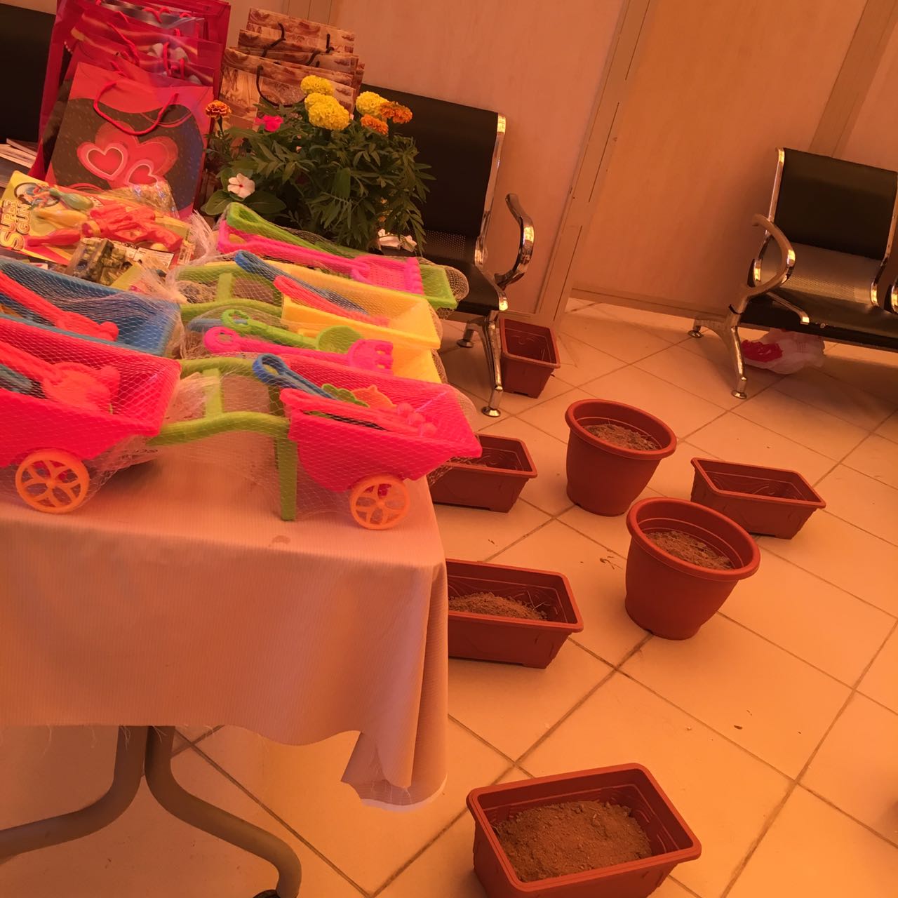 تحت رعاية سعادة وكيلة كلية المجتمع الدكتورة/ أمينة بنت عبدالرحمن المشحن وبمشاركة المجلس الطلابي ومنسوبات الكلية استقبلت الكلية بكل فرح وابتهاج يوم الأربعاء الموافق 4/7/1439هـ أطفال الجمعية الخيرية لرعاية الايتام " إنسان" ومشرفاتهم حيث عقد برنامج متكامل أبتدأ بالترحيب بهم في الكلية وتوزيعهم على الأركان المتنوعة التي تضم الألعاب والمسابقات والهدايا التي تم توزيعها على جميع الأطفال والفعاليات المختلفة. وقد قضى الأطفال ومشرفاتهم يوماً جميلا في الكلية . أعربوا في نهايته عن شكرهم لوكيلة الكلية ومنسوباتها وطالباتها على حسن الضيافة والاستقبال .