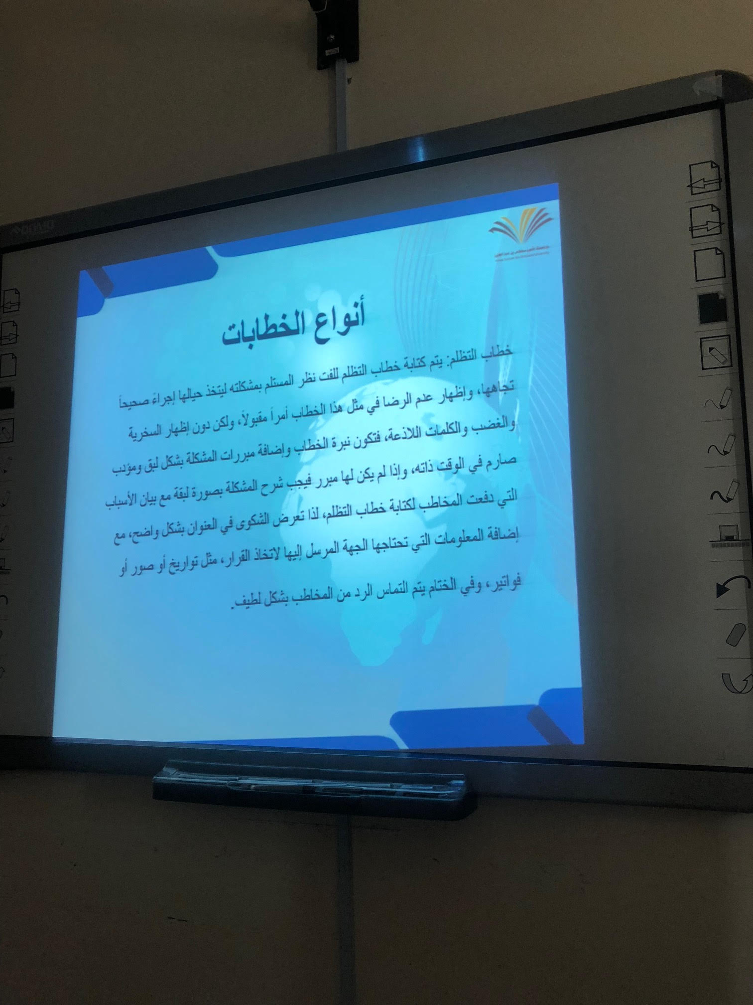 تحت رعاية وكيلة كلية المجتمع بالخرج الدكتورة/ أمينة بنت عبدالرحمن المشحن. أعلن يوم الأحد الموافق 24/7/1440هـ انطلاق الملتقى الإداري الأول المقام بالكلية" الطريق الى التميز الإداري " بدورة تدريبية بعنوان " فن كتابة الخطابات باستخدام معالج النصوص word " من تقديم الأستاذة/ سناء احمد عزام .وقد تناولت الأستاذة عدد من المحاور الهامة في كتابة الخطابات كان منها:- ماهي الخطابات- أنواع الخطابات- نماذج للخطابات- فوائد تعلم كتابة الرسالة الإدارية والتقرير- طرق كتابة الخطاباتثم بعد ذلك انتقلت الأستاذة الى مرحلة التطبيق العملي لطريقة صياغة الخطاب بطريقة صحيحة وسليمة وتم التطبيق من قبل الحضور.وفي نهاية الدورة دار نقاش بين الأستاذة والحضور حول موضوع الدورة واجابت على استفساراتهن عن بعض النقاط التي تعزز لديهن مهارة كتابة الخطابات.ومن الجدير ذكرة ان الملتقى الإداري الأول الذي تنظمه إدارة كلية المجتمع بالخرج يحظى بإشراف ومتابعة من سعادة عميد الكلية الدكتور /حمد بن عبدالله القميزي . الذي جعل الرقي بالمستوى الإداري في الكلية اولى اهتماماته لما يعود ذلك من أثر واضح وملموس على سير العملية التعليمية بطريقه صحيحة ومتميزة.