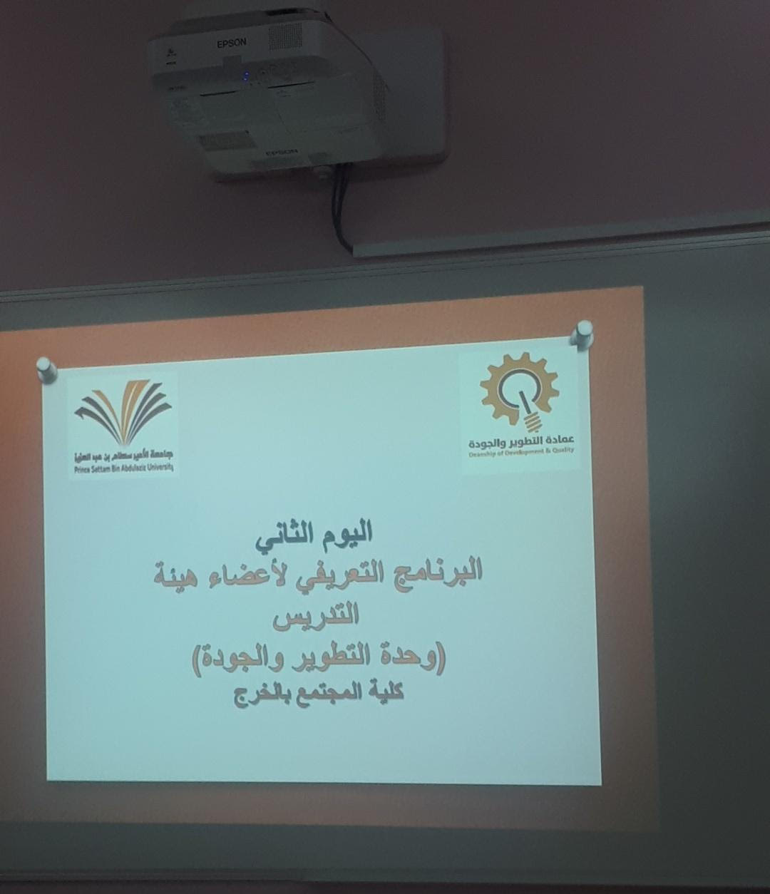 تحت رعاية سعادة وكيلة كلية المجتمع بالخرج الدكتورة/ أمينة بنت عبد الرحمن المشحن، وبحضور أعضاء هيئة التدريس بالكلية انطلقت فعاليات الملتقى التعريفي الأول لعضوات هيئة التدريس بالكلية يوم الثلاثاء الموافق 4/1/1441هـ.وقد ابتدأت فعاليات الملتقى بكلمه لسعادة وكيلة كلية المجتمع الدكتورة/ أمينة بنت عبد الرحمن المشحن. هنأت فيها الأعضاء بالعام الجامعي الجديد 1441هـ؛ وتمنت ان يكون هذا العام حافلاً بكل خير؛ كما أعربت عن سعادتها وتهنئتها للجميع لحصول جامعة الأمير سطام بن عبد العزيز على الاعتماد المؤسسي الكامل؛ وحثت جميع الحضور لبذل قصارى جهدهم لتحقيق التقدم والنجاح للكلية في كآفة المجالات. كما هنئت سعادة وكيلة الكلية الأستاذة/ ناهد عصري أبو زيد بصدور قرار سعادة وكيل الجامعة للشؤون التعليمية والأكاديمية بتكليفها مساعدة للمشرف على قسم الحاسب الآلي بالكلية. وكذلك صدور قرار سعادة وكيل الجامعة للشؤون التعليمية والأكاديمية بتكليف الدكتورة/ شيراز محمد عثمان مساعدة للمشرف على قسم إدارة الأعمال، وتمنت لهن التوفيق والسداد.ثم تلى ذلك إقامة ورشة عمل بعنوان: " دور الإرشاد الأكاديمي في العملية التعليمية" من تقديم الأستاذة/ ناهد عصري أبو زيد. رئيسة وحدة الإرشاد الأكاديمي بالكلية.وكان من أهم المحاور التي نوقشت في الورشة:تعريف الإرشاد الأكاديمي (الرؤية – الرسالة – الأهداف)، دور المرشد الأكاديمي في عملية الإرشاد، دور ومسؤولية الطالب في عملية الإرشاد، المهام المطلوبة من أستاذ المقرر في الإرشاد الأكاديمي، مهام مكتب الإرشاد الأكاديمي، فترة الإضافة والحذف، حفل استقبال الطالبات، خطط الطالبات المتعثرات، أنشطة وحدة الإرشاد الأكاديمي.وفي نهاية الورشة دار حوار بين الأستاذة ناهد والحضور ثم اجابت عن الأسئلة التي تم طرحها.ثم استكمل الملتقى فعالياته في اليوم الثاني وهو يوم الأربعاء الموافق 5/1/1441هـ بورشة عمل بعنوان (دور وحدة التطوير والجودة في العملية التعليمية) من تقديم الأستاذة/ عزة النيل عثمان، مساعدة الوكيلة لشؤون التطوير والجودة تناولت فيها عدد من المحاور كان من أهمها:التعريف بأهمية وحدة التطوير والجودة (الرؤية -الرسالة -الأهداف)، سياسة الجودة، تطبيق جودة المقررات، آلية ترميز ملف المقرر، ملف المقرر، المقارنات المرجعية.وفي نهاية الورشة تمت مناقشة بعض المحاور مع الحضور والإجابة على اسئلتهن.وفي اليوم الخميس الموافق 6/1/1441هـ وهو اليوم الثالث من أيام الملتقى التعريفي الأول لأعضاء هيئة التدريس في كلية المجتمعتم استكمال ومناقشة عدد من المحاور المطروحة الخاصة بوحدة التطوير والجودة ثم تلى ذلك إقامة ورشة عمل من تقديم الأستاذة / ناهد عصري ابو زيد، رئيسة وحدة الإرشاد الأكاديمي بالكلية. بعنوان (الخدمات الأكاديمية والبلاك بورد)تناولت فيها الأستاذة ناهد عدد من المحاور كان من أهمها:التعريف بالخدمات الإلكترونية والبريد الإلكتروني وبوابة التعليم الإلكتروني والخدمات التي تقدمها إدارة تقنية المعلومات بالجامعة.كذلك استمع الحضور الى شرح كامل ومفصل عن كيفية استخدام نظام البلاك بورد وامكانية تخصيص الشاشة وانشاء محتوى والواجبات والاختبارات ومركز التقديرات وغيرها من الخصائص في النظام.وقد أكدت الأستاذة ناهد على أهمية معرفة عضو هيئة التدريس واطلاعه على هذه الإرشادات لما لها من أهمية عالية في العملية التعليمية ومتابعة الطالبات الكترونياً. وفي نهاية فعاليات الملتقى التعريفي الأول لأعضاء هيئة التدريس المقام في كلية المجتمع بالخرج. تقدمت وكيلة الكلية بخالص الشكر والتقدير لأعضاء هيئة لتدريس المشاركات في ورشات العمل ولكافة الحضور وتمنت للجميع دوام التوفيق والنجاح.
