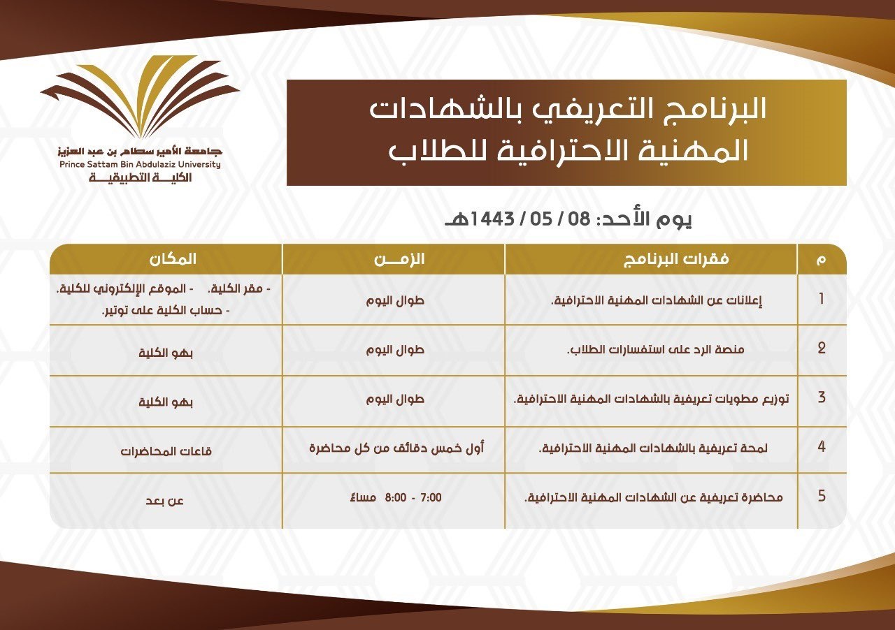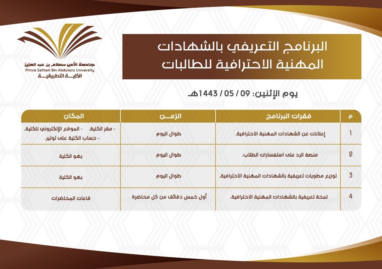 البرنامج التعريفي بالشهادات المهنية الاحترافية لطلاب والطالبات الكلية التطبيقية .