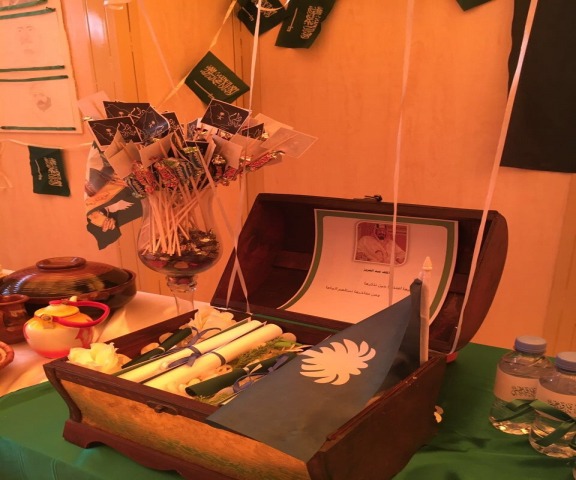 احتفال كلية المجتمع -شطر الطالبات - باليوم الوطني السابع والثمانوناليوم الوطني للمملكة العربية السعودية هو فرحة لأبنائه المخلصين وحرصًا على تفعيل هذا اليوم العظيم قامت كلية المجتمع -شطر الطالبات- يوم الخميس الموافق 8/1/1439هـ بالاحتفاء باليوم الوطني لتوحيد المملكة العربية السعودية السابع والثمانين وقد تنوعت الفقرات بين الماضي والحاضر وتنقلت بين أمجاد الوطن الغالي حيث استهل الحفل بسكينة مع آيات الله الكريم بعد ذلك بدأت الرحلة مع وقفه مهيبة للسلام الملكي تلاها كلمة وكيلة الكلية د/ أمينه عبدالرحمن المشحن , بهذه المناسبة ثم قصيدة في حب الوطن وتم عرض برنامج مرئي من إنتاج الطالبات تتضمن المسيرة الخالدة لهذا الوطن الغالي , ثم أشعل الحماس في نفوس الطالبات بمسابقة تاريخية وتم توزيع الهدايا فيها للطالبات الفائزات، وقد اختتم الحفل بكلمة ختامية والنشيد الوطني .