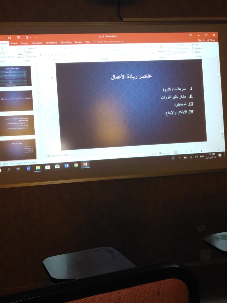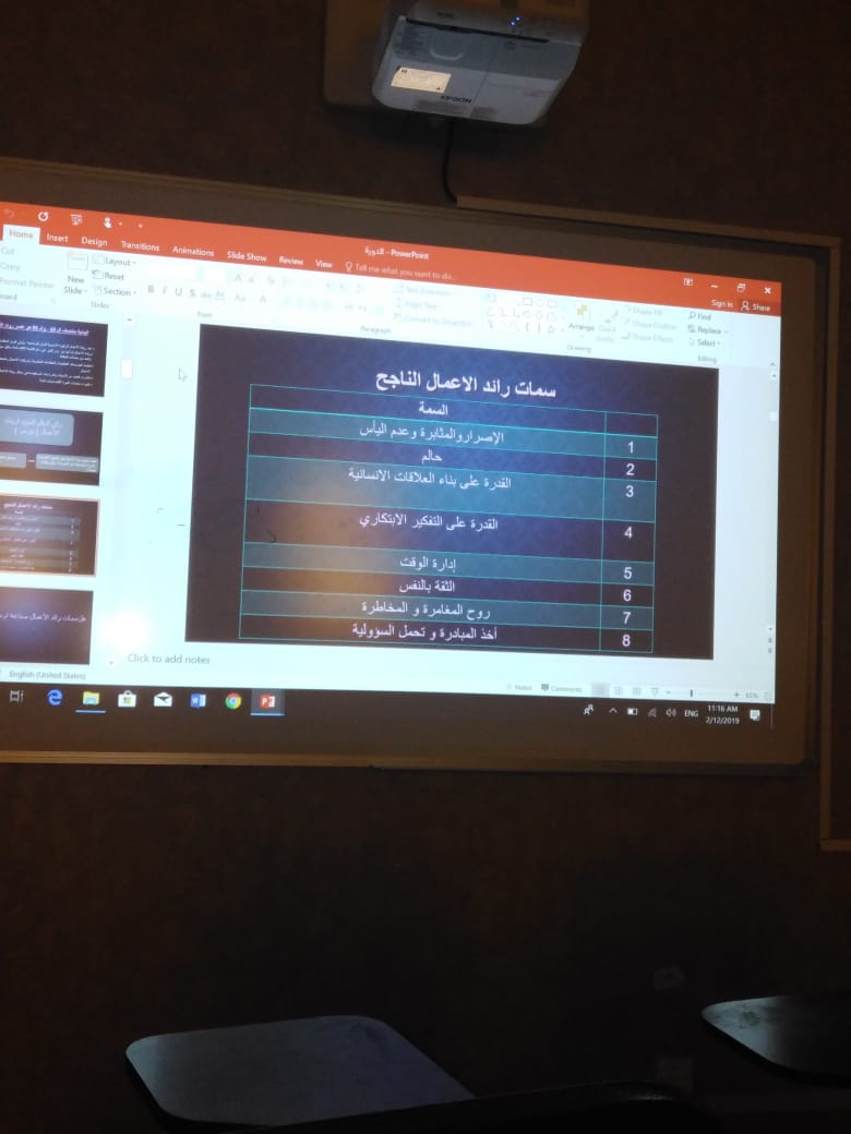تحت رعاية سعادة وكيلة كلية المجتمع بالخرج الدكتورة/ أمينة بنت عبدالرحمن المشحن أقامت الكلية يوم الثلاثاء 7/6/1440هـ دورة تدريبية عن:"أساسيات ريادة الأعمال" قدمتها الدكتورة/ خضرة حسن علي, منسقة قسم إدارة الاعمال بالكلية.وبحضور طالبات ومنسوبات الكلية، تحدثت فيها عن التعريف بريادة الأعمال وكيفية صناعة الفكرة وابتكار أساليب جديدة لتطويرها والسمات الأساسية لرائد الأعمال وأهم الاختلافات بين ريادة الأعمال والمنشآت الصغيرة وأبرز العقبات والمخاطر التي تواجه رائدات الأعمال، كما تحدثت عن عناصر ريادة الأعمال وطرحت مجموعة أفكار وابتكارات في هذا المجال مع طالبات الكلية بمشاركة رائعة ونقاش ثري ومفيد حول الاقتصاد المعرفي وكيفية تحويل المعرفة والتقنية من نشاط الى واقع اقتصادي يخدم المجتمع والدولة.وتأتي هذه الفعالية ضمن سلسلة الدورات التي تقدمها كلية المجتمع بالخرج لطالباتها لتأهيلهن لسوق العمل.