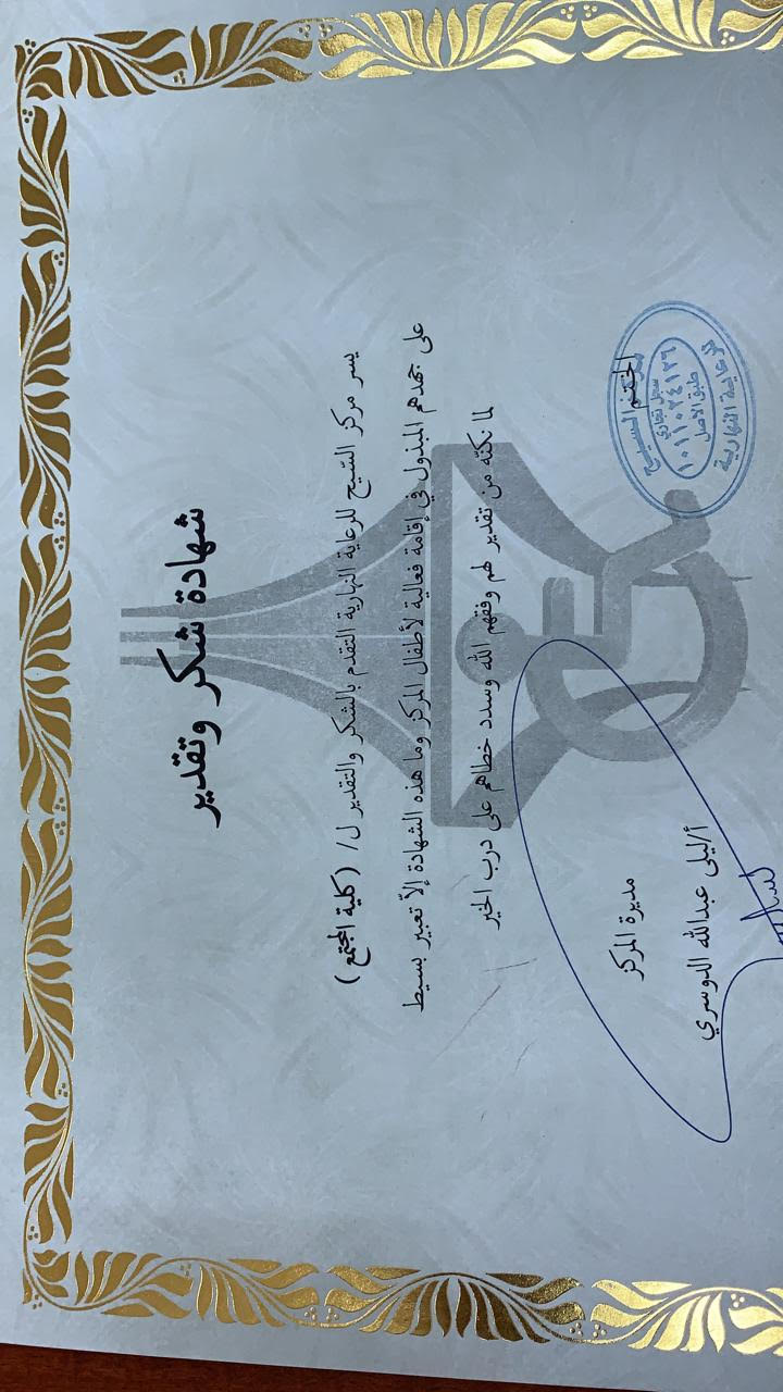 نوره دحيم شبيب الدوسرينظمت كلية المجتمع يوم الأحد الموافق 4-4-1441هـ ضمن سلسلة البرامج التطوعية التي تنظمها الكلية بإشراف منسقة لجنة العمل التطوعي بكلية المجتمع الأستاذة / رفيدة قمر الدولة محمد ؛ فعالية الاحتفال بيوم الطفل العالمي لأطفال مركز السيح للرعاية النهارية؛ وشملت الفعالية مجموعة من البرامج و الأركان والمسابقات والرسم على الوجه والألعاب الحركية التي نظمها طالبات كلية المجتمع، وشملت الفعالية كذلك مشاركات من أطفال المركز بالأناشيد والفقرات المتنوعة .وفي نهاية الفعالية قدم طالبات كلية المجتمع عدد من الهدايا والتوزيعات لأطفال المركز.وقد تقدمت مديرة مركز السيح للرعاية النهارية الأستاذة / ليلى الدوسري ؛ بخالص شكرها وتقديرها لكلية المجتمع بالخرج وكآفة منسوباتها على هذه اللفتة والمبادرة الرائعة التي كان لها دور كبير واثر واضح على أطفال المركز وساهمت في رسم الابتسامة على وجوههم وزرع السعادة في قلوبهم .