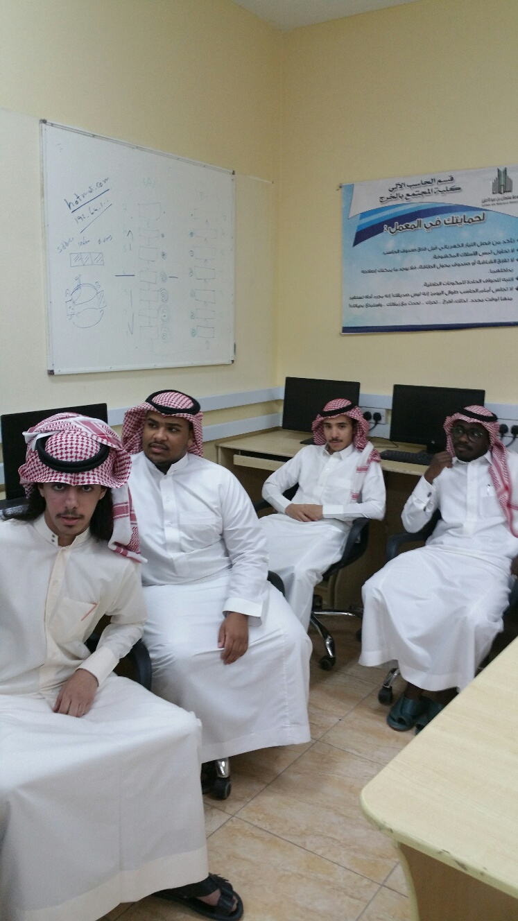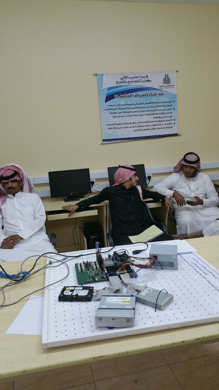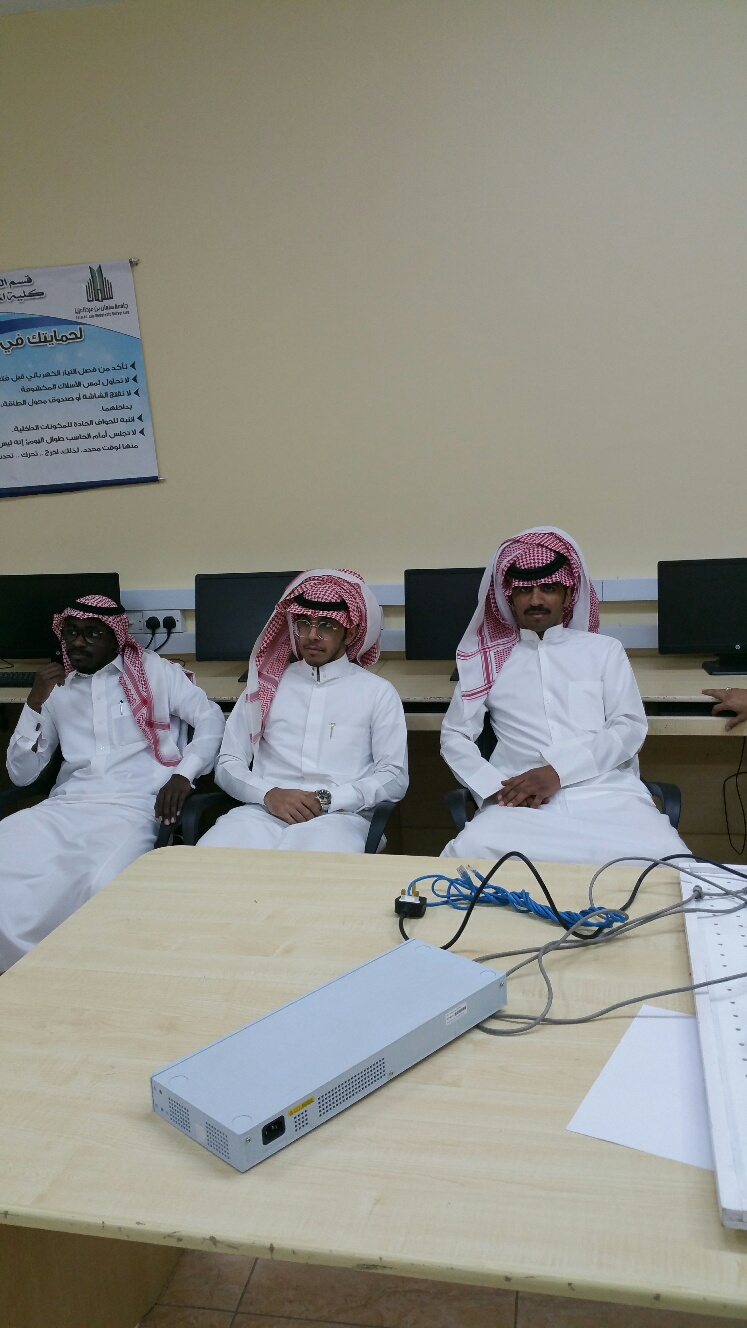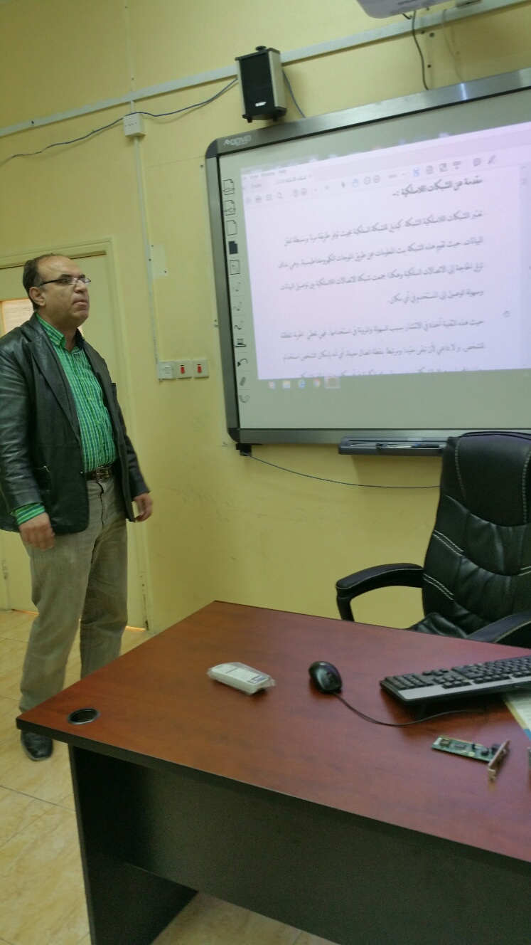 قام ا. جهاد أحمد غانم بعقد دورة في الشبكات اللاسلكية لطلاب الكلية ضمن الأنشطة الطلابية في اليوم الثلاثاء 27/5/1439 في تمام الساعة العاشرة صباحا الى الساعة الثانية عشرة ظهرا.