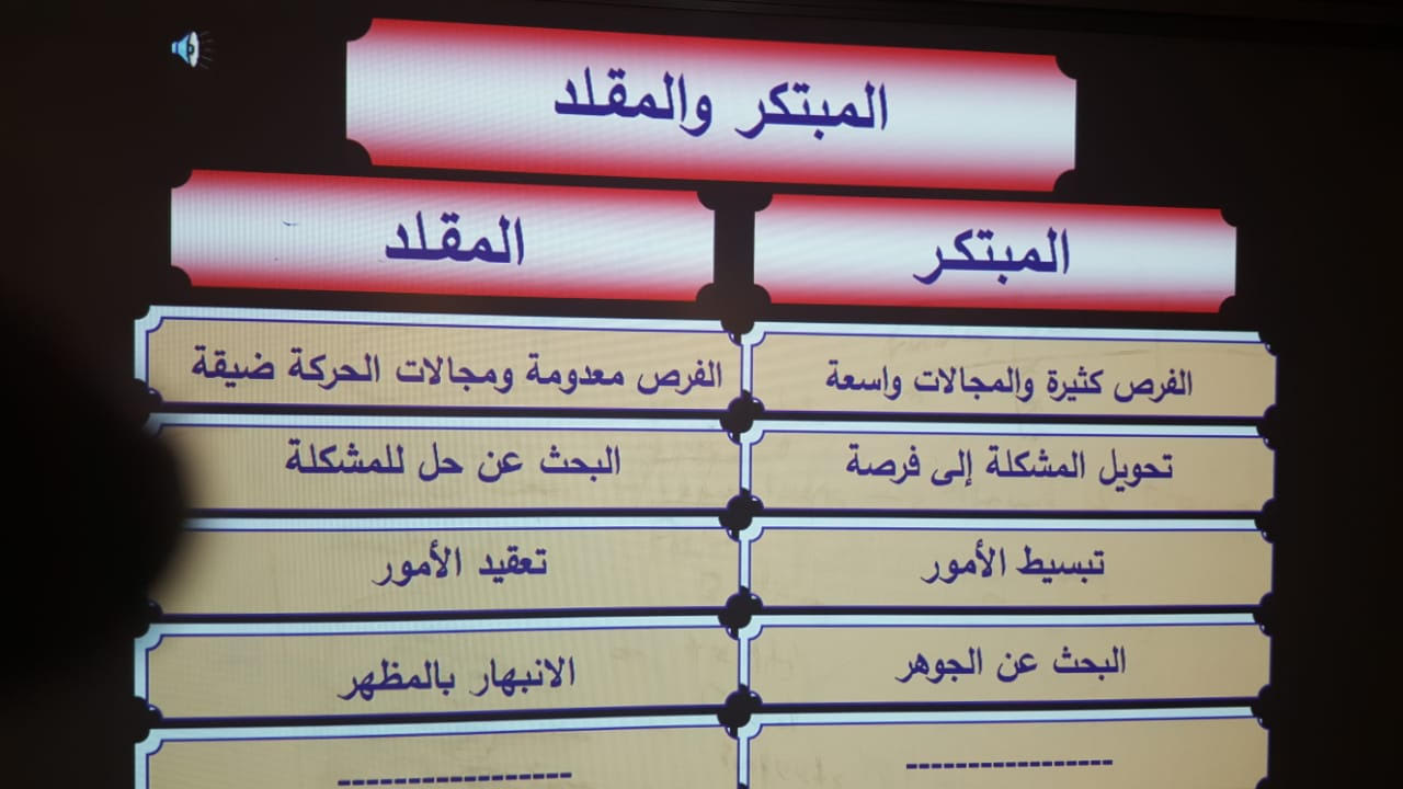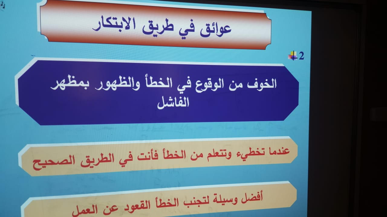 نوره دحيم شبيب الدوسريضمن سلسلة دورات وحدة التدريب الطلابي بقسم إدارة الأعمال أقامت الوحدة دورة تدريبية بعنوان " بناء العقلية الابتكارية" من تقديم الدكتورة / خضرة حسن علي صديق .تناولت فيها الدكتورة عدداً من المحاور كان منها:مفهوم الابتكار.فوائد الابتكار.الفرق بين المبتكر والمقلد.التفكير خارج الصندوق.معوقات الابتكار.كما قدمت الدكتورة عدداً من النصائح للطالبات وأوضحت لهم ان الانسان هو من يصنع النجاح لنفسه ؛ وأن الخالق البديع اعطى كل شخص العديد من المواهب هو من يستطيع توظيفها واستغلالها كما وضحت أن الخوف من الوقوع في الخطأ هو أهم أسباب الفشل . وفي نهاية الدورة التدريبية تقدمت سعادة وكيلة الكلية الدكتورة / أمينة بنت عبدالرحمن المشحن بخالص الشكر لوحدة التدريب الطلابي بقسم إدارة الأعمال وللدكتورة/ خضرة حسن ؛ لتقديمها الدورة ولمنسوبات الكلية وطالباتها على الحضور والمشاركة .