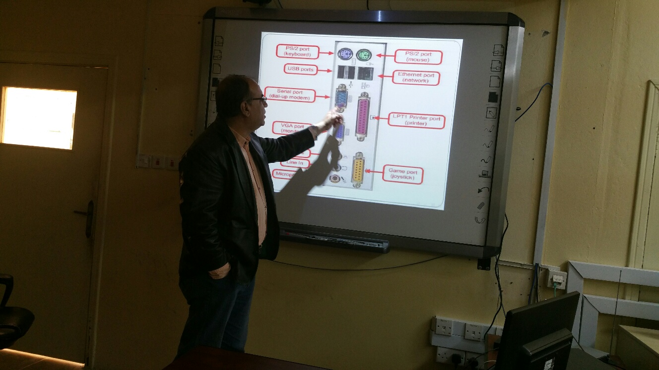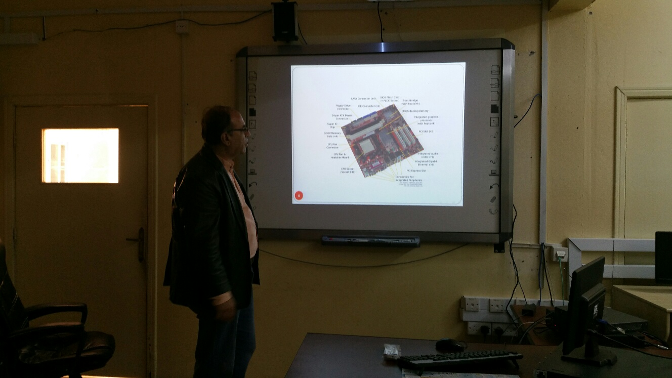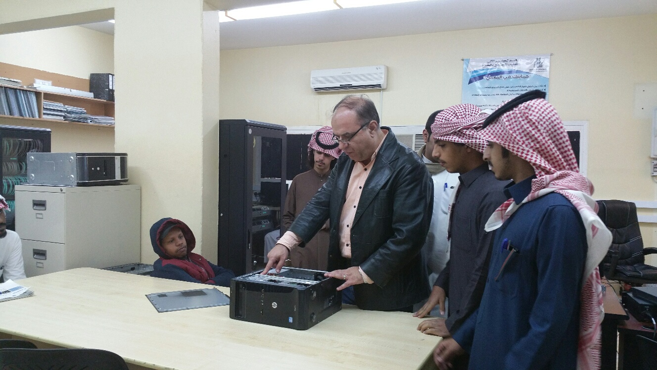 حيث يتكون الحاسب الآلي من اجزاء داخلية (لوحة أم ومعالج وذاكرة رئيسية وكروت مدمجة وغير مدمجة وقرص صلب و DVD ) واجزاء خارجية من شاشة ولوحة مفاتيح وفأرة وصندوق