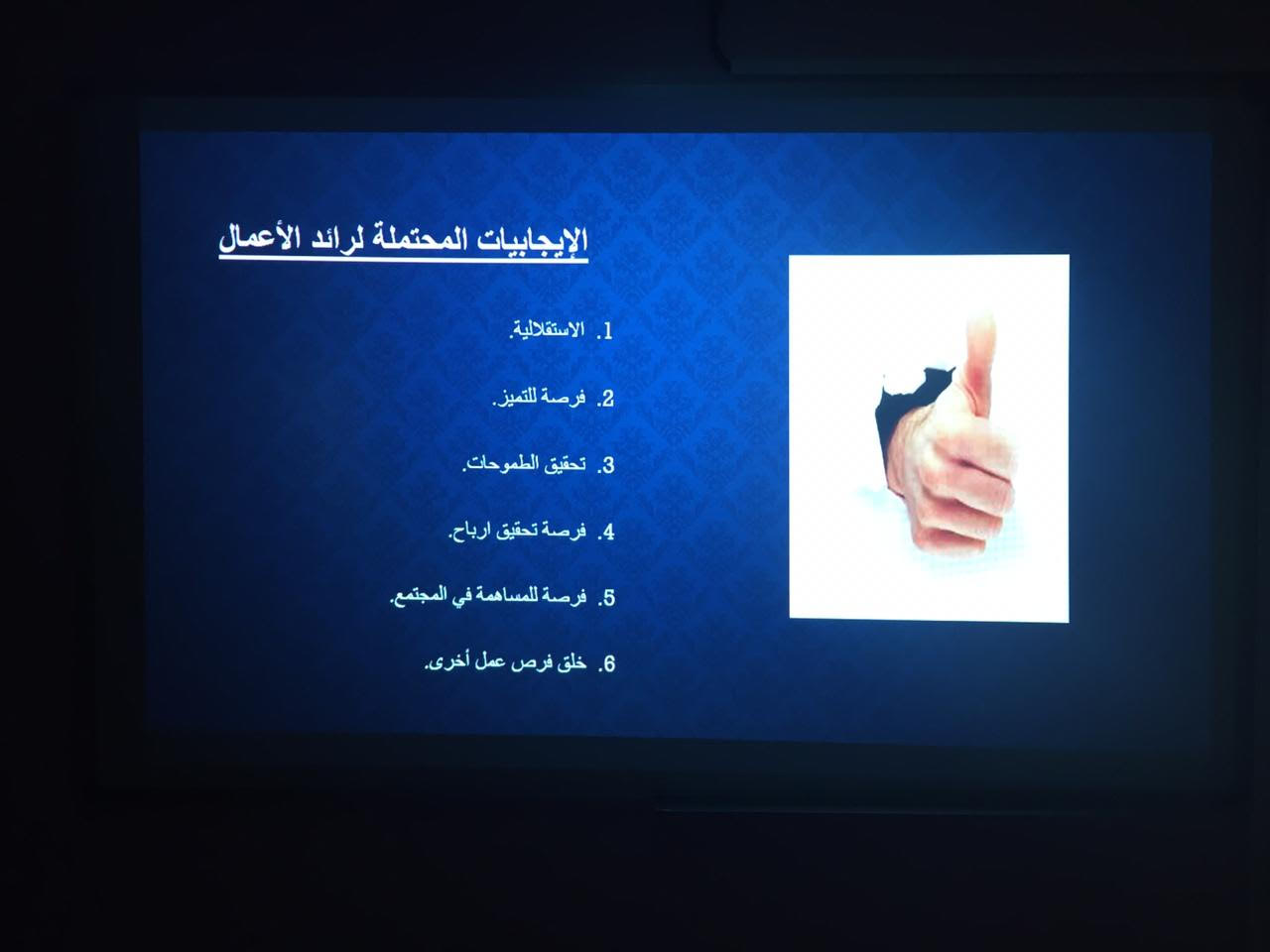 أقام قسم إدارة الأعمال بكلية المجتمع بالخرج دورة تدريبية تثقيفية لمنسوبات الكلية بعنوان "فن ريادة الأعمال" وذلك يوم الأربعاء الموافق 9-3-1441هـ في قاعة الأنشطة الطلابية بالكلية وكانت الدورة التدريبية من تقديم الدكتورة/خضرة حسن علي صديق.وقد تناولت الدكتورة في الدورة التدريبية عدة محاور كان منها:مفهوم ريادة الأعمال.الصفات الشخصية لرائد الأعمال.المهارات العملية لنجاح رائد الأعمال.صناعة الأفكار الريادية.وقد تناولت الدكتورة كذلك تعريف ريادة الأعمال وهو إنشاء عمل ريادي يتسم بالإبداع والمخاطرة؛ وتناولت كذلك طريقة صناعة الفكرة وكذلك تطرقت إلى السلبيات والمخاطر المحتملة لرائد الأعمال وكذلك تطرقت الى عناصر ريادة الأعمال بالإضافة إلى العديد من النقاط الهامة التي شجع طرحها الطالبات لمناقشة الدكتورة في عدد من التساؤلات التي تصب في محاور الدورة الأساسية.وفي نهاية الدورة التدريبية تقدمت سعادة وكيلة كلية المجتمع بالخرج الدكتورة/ أمينة بنت عبد الرحمن المشحن؛ بالشكر للدكتورة خضرة حسن على تقديم الدورة التدريبية ولقسم إدارة الأعمال بالكلية على حسن تنظيم الدورة.