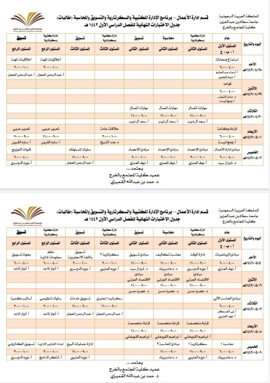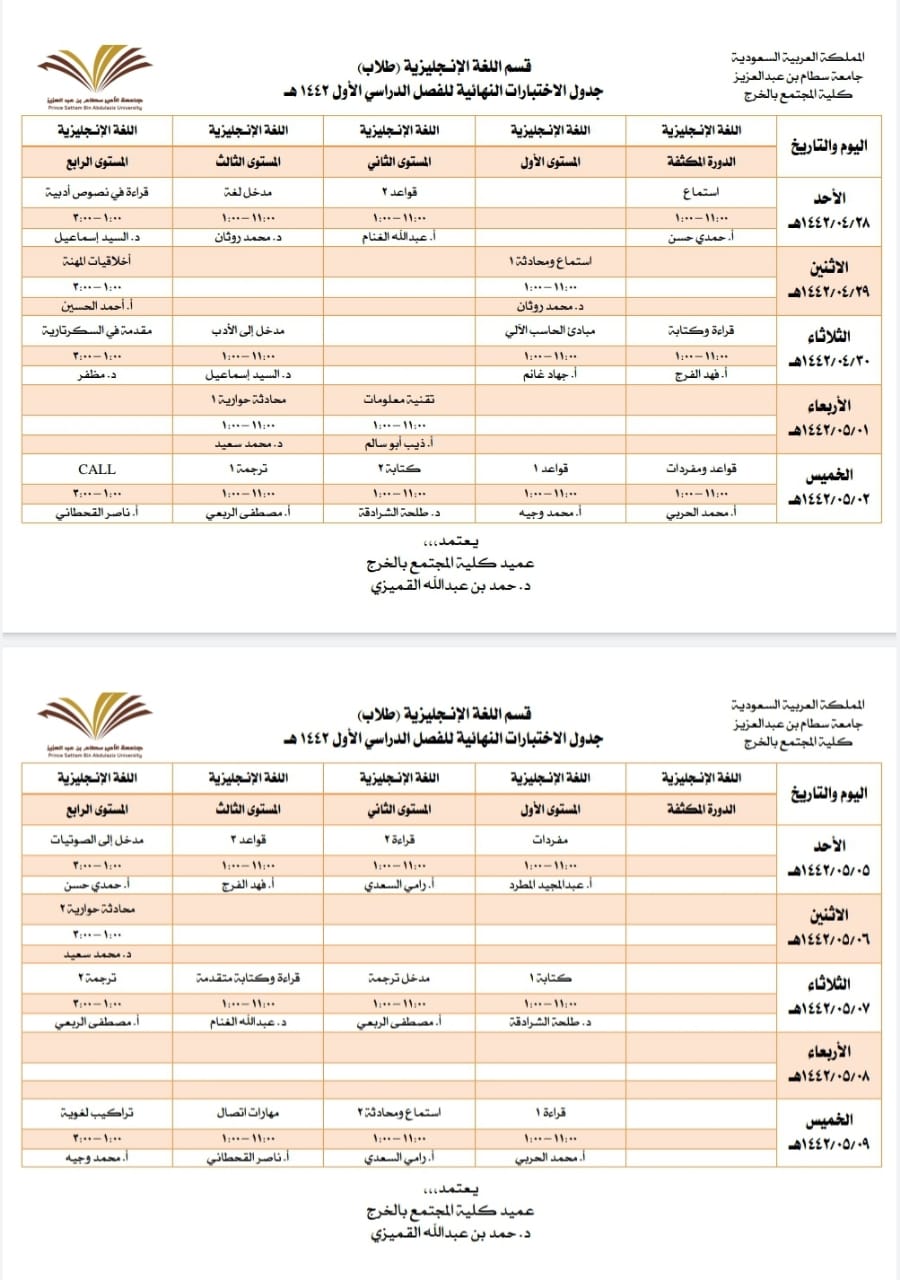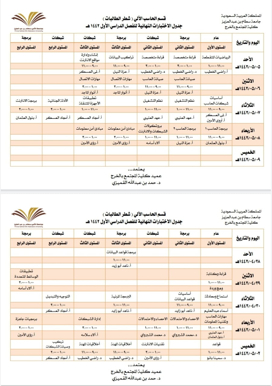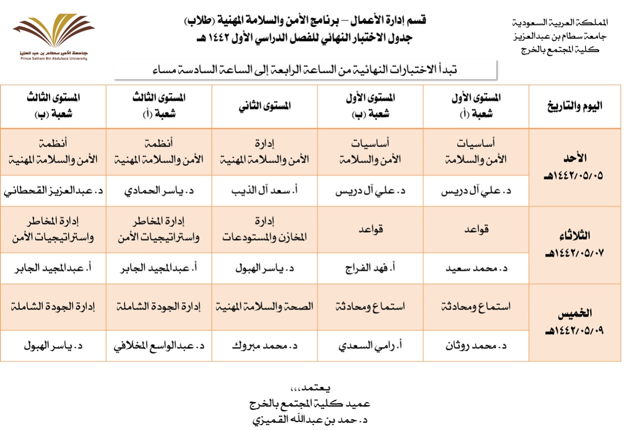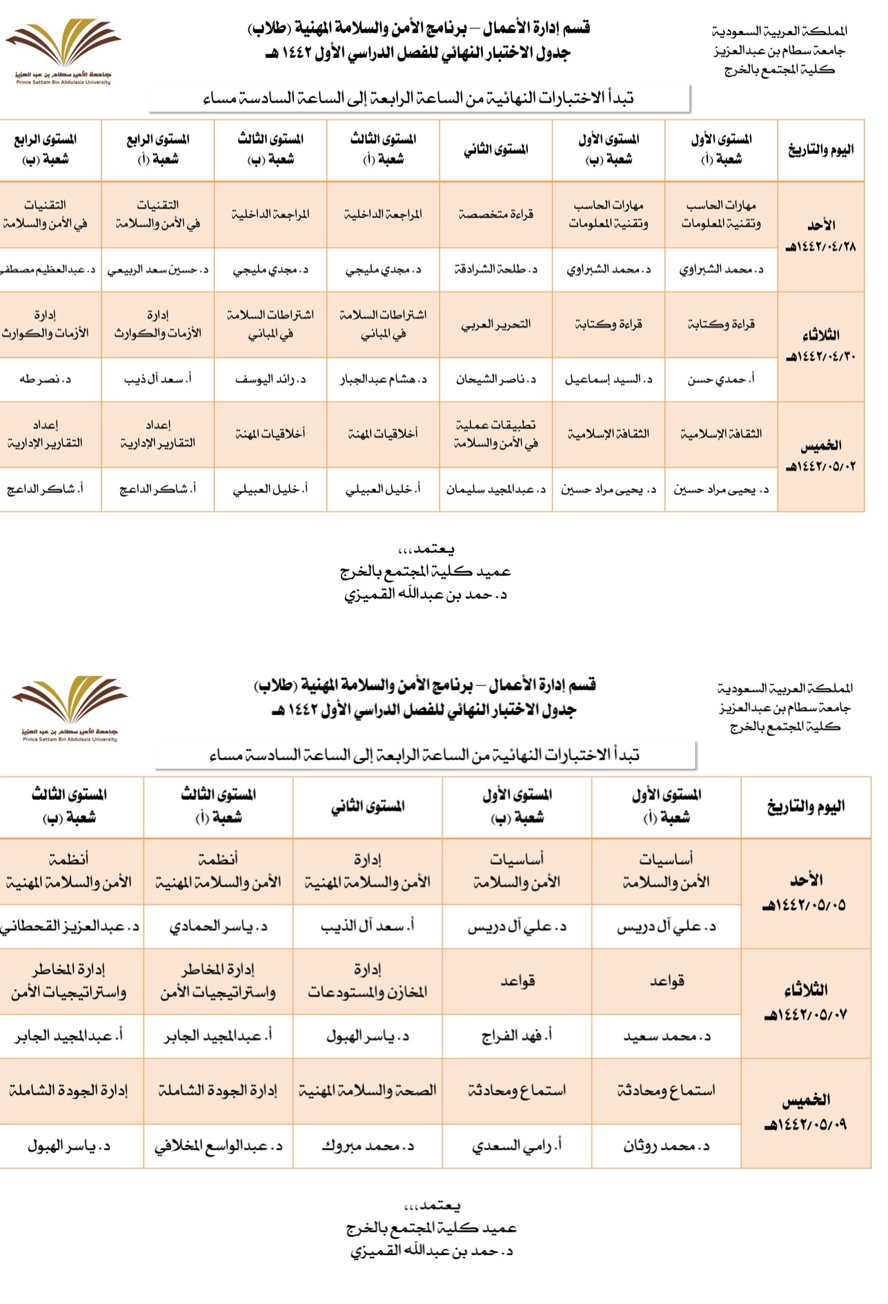 جدول الاختبارات النهائية للفصل الدراسي الاول 1442