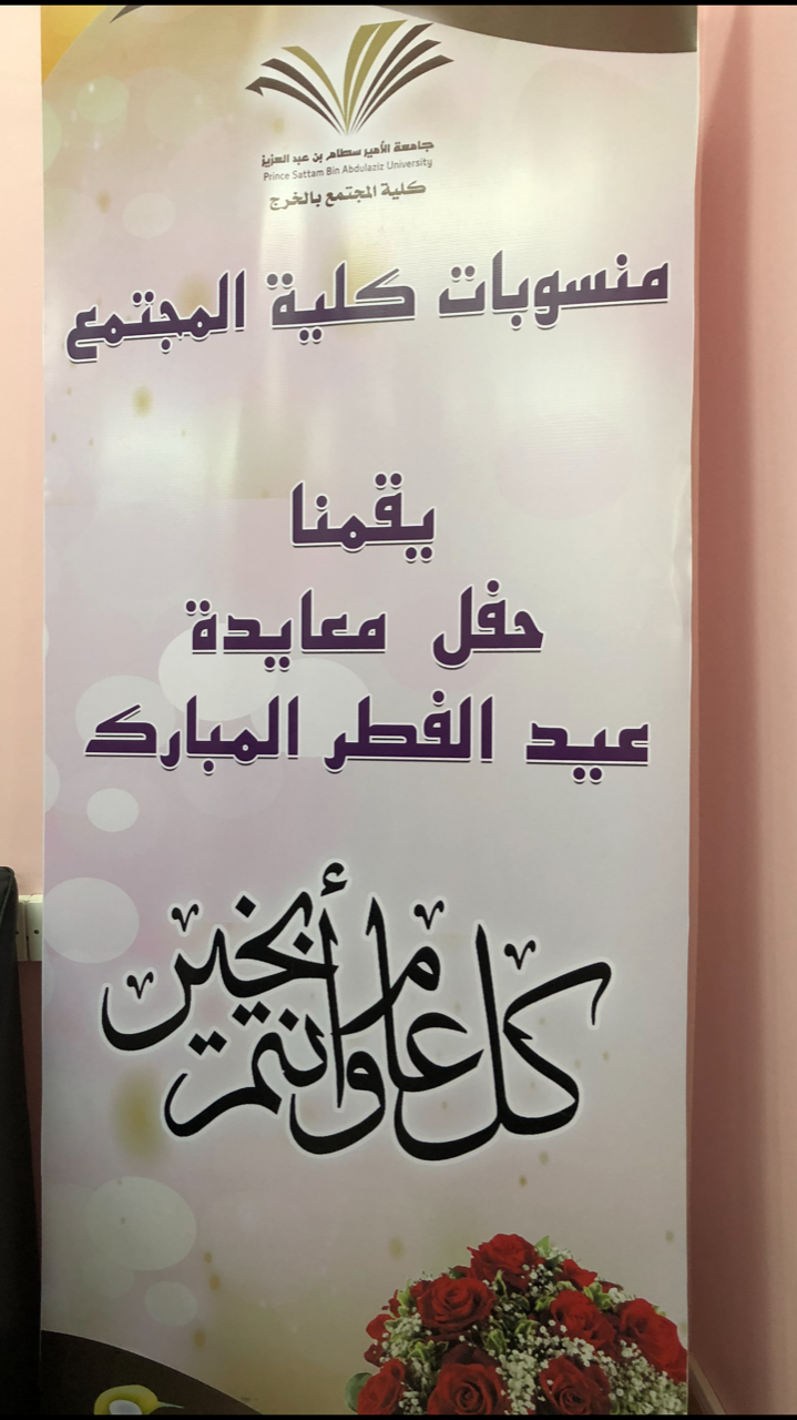 برعاية سعادة وكيلة كلية المجتمع بالخرج الدكتورة/ أمينة بنت عبد الرحمن المشحن. أقامت وحدة العلاقات العامة والإعلام بالكلية يوم الأربعاء الموافق 9/10/1440هـ حفل معايدة لمنسوبات الكلية.وقد استهل الحفل بكلمة لسعادة وكيلة الكلية هنئت فيها منسوبات الكلية بعيد الفطر المبارك وسألت الله العلي القدير ان يعيده على المملكة العربية السعودية وقيادتها وشعبها بالخير والبركة. ثم تلا ذلك كلمة لمديرة الإدارة في الكلية الأستاذة / نوره دحيم الدوسري . هنئت فيها الجميع بالعيد المبارك وشكرت فيها جميع منسوبات الكلية على جهودهم المبذولة طيلة الفترة السابقة سائلة الله للجميع دوام التقدم والنجاح. ثم توالت الفقرات والتهاني من أعضاء هيئة التدريس وأعضاء الهيئة الإدارية في جو يسوده الود والتعاون والإخوة والألفة.