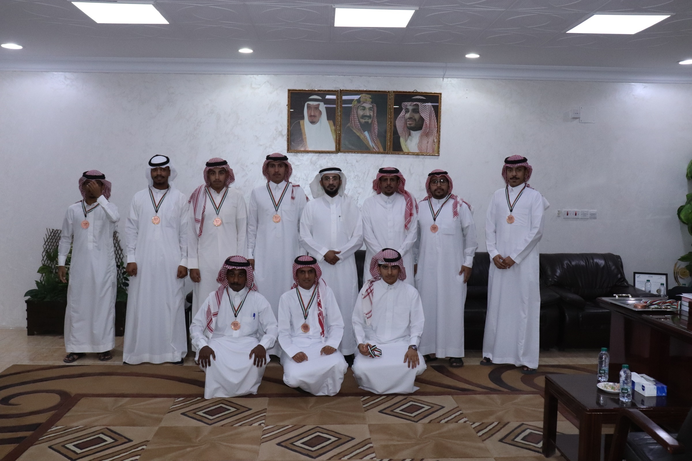 عبدالله إبراهيم العبلانحقق النشاط الرياضي بكلية المجتمع بالخرج إنجازًا جديدًا حيث حصل فريق الكلية على المركز الثالث في بطولة خماسي كرة القدم للصالاتوقد قام سعادة عميد شؤون الطلاب د. ثلاب الشكرة بتكريم فريق الكلية وأشاد بمجهود الفريق وما قده من لعب نظيف وشجعهم على بذل المزيد من الجهد للنهوض بالجامعة في النشاط الرياضي على مستوى الجامعات السعودية. كما استقبل سعادة عميد الكلية د. حمد بن عبدالله القميزي في مكتبه فريق الكلية لكرة القدم وفي البداية قدم الشكر لمدرب الفريق أ/ عبدالله يحيي اليحياء لجهده المبذول في تدريب وتأهيل الفريق، كما قدم الشكر لأعضاء الفريق وأكد على أن الكلية تنتظر منهم المزيد من التقدم وتحقيق المركز الأول في كافة البطولات وأن الكلية لن تتأخر عن توفير التدريب والدعم للفريق. وفي نهاية اللقاء تقدم مدرب الفريق أ. عبدالله اليحياء وكافة اللاعبين بخالص الشكر إلى سعادة عميد الكلية على تحفيزه الدائم لهم ورعايتهم أكاديميًا ورياضيًا، وأكدوا على أنهم سوف يبذلون المزيد من الجهد لحصد كافة البطولات ومنافسة كافة كليات الجامعة.