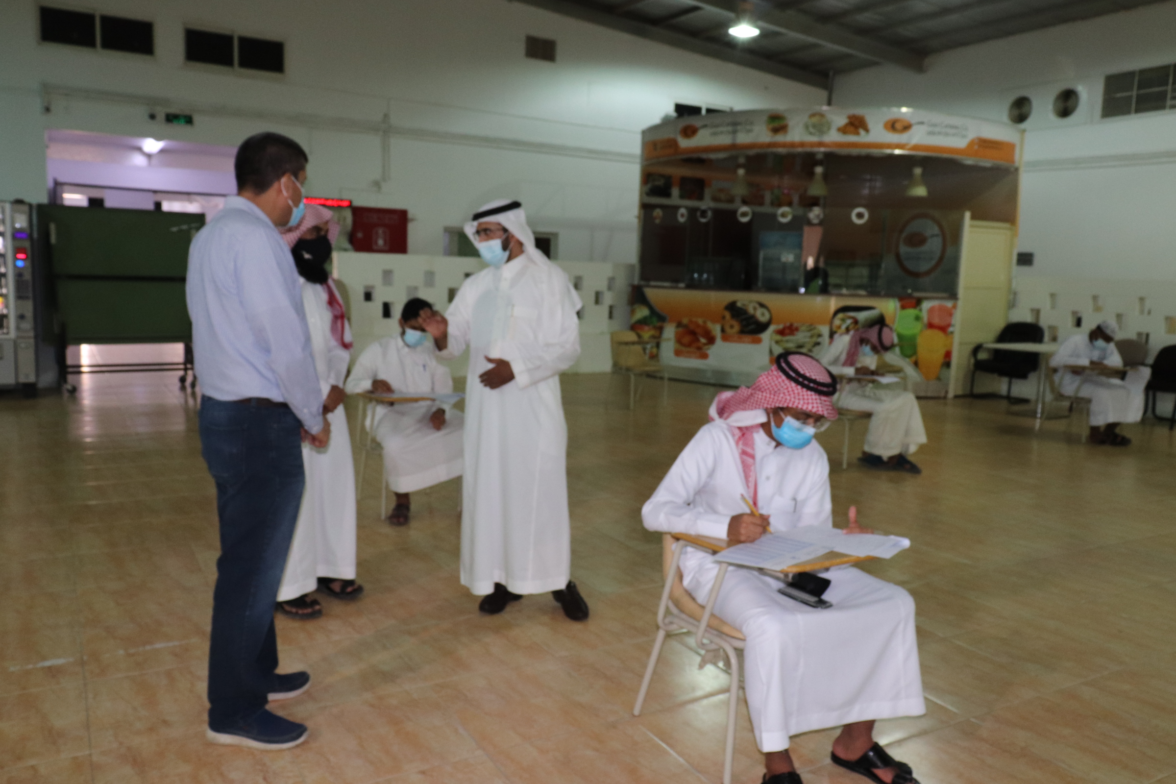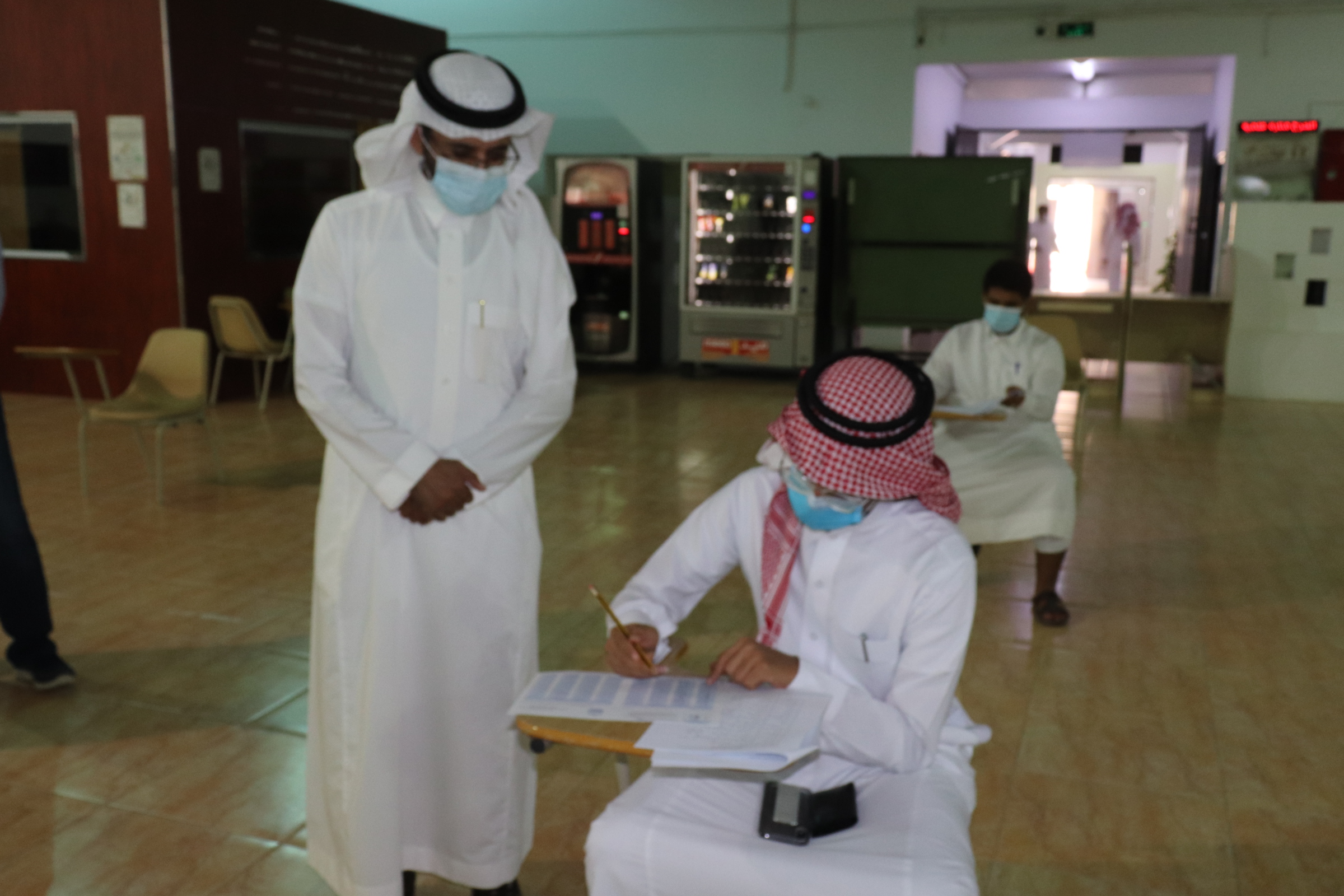 عقد قسم اللغة الإنجليزية بكلية المجتمع بالخرج في يومي الثلاثاء والأربعاء 13-14/1/1442هـ الموافق1-2/9/2020م اختبار للطلاب المستجدين بالقسم مع اتخاذ جميع الإجراءات الاحترازية. حيث بلغ عدد الطلاب المستجدين (85 طالب) وحضر الاختبار منهم (32 طالب)، وقد قام سعادة عميد الكلية الدكتور حمد بن عبدالله القميزي وسعادة وكيل الكلية للدراسات العليا والبحث العلمي والجودة وخدمة المجتمع الدكتور محفوظ بن مبارك الدوسري بجولة تفقدية لسير الاختبار. يذكر أن هذا الاختبار يجريه القسم بهدف معرفة المستوي العلمي للطلاب الجدد ولرفع المستوى الاكاديمي لمدخلات القسم ويتم الاختبار من خلال الإجابة على (100) سؤال من نوع الاختيار المتعدِّد، موزعة على المهارات اللغوية الاساسية بالإضافة الى قواعد اللغة الانجليزية ومفرداتها.