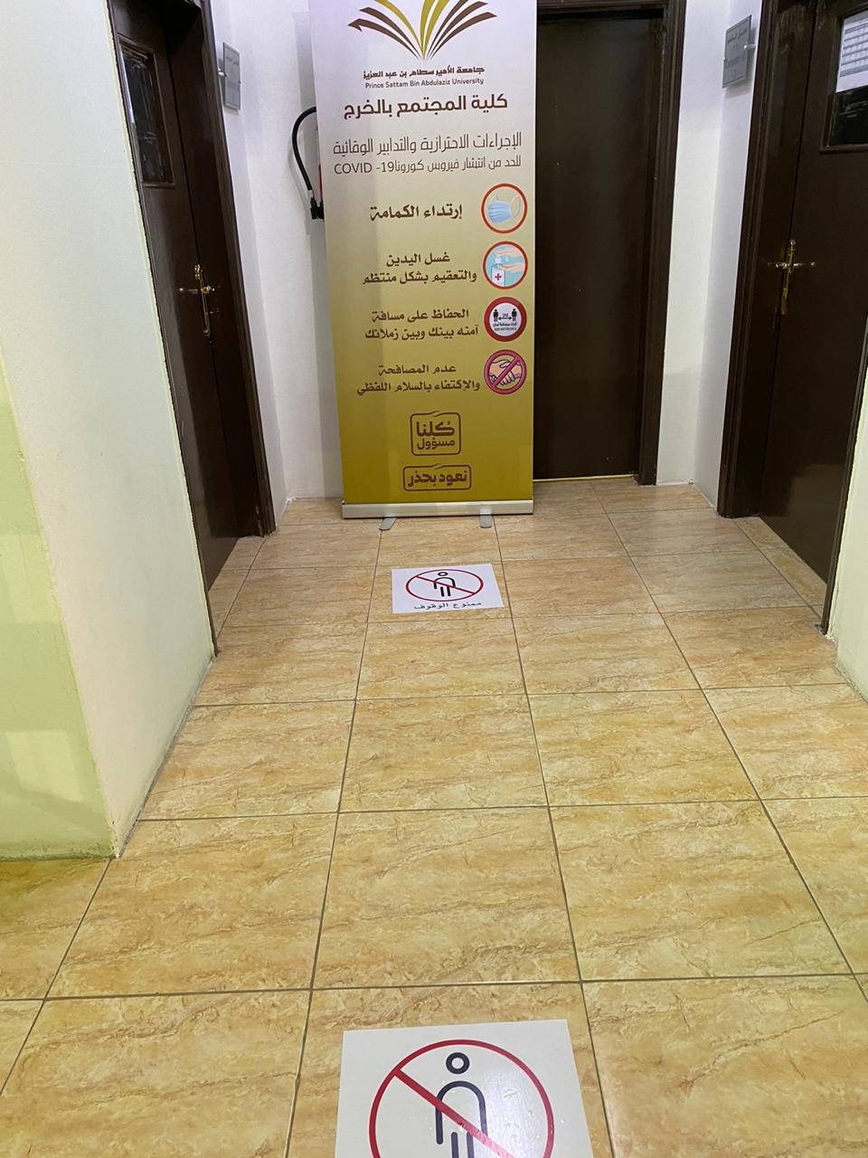 من جانبه وجه سعادة عميد الكلية التأكيد على التباعد داخل القاعات الدراسية ومعامل الحاسب الآلي ومعامل اللغة الإنجليزية لضمان التباعد طبقاً للإجراءات الصحية المتبعة من وزارة الصحة في حالة حضور الطلاب والطالبات لدراسة المقررات العملية, كما وجه بتطبيق الخطة العامة لوزارة التعليم لبدء العام الدراسي الجديد بما يتوافق مع الاحترازات وتحديد نموذج نطاق التشغيل الأصفر لتكون الدراسة فيه عن بعد وحضورياً للمقررات العملية، مع الأخذ بعين الاعتبار للكثافة العددية والحالة الصحية للطلاب والطالبات أثناء تطبيق النطاقات والنماذج التشغيلية التي ترد من قبل وزارة التعليم ووزارة الصحة من أجل تقديم تعليم جامعي آمن والحفاظ على سلامة الطلاب والطالبات والكوادر التعليمية والإدارية بالكلية.