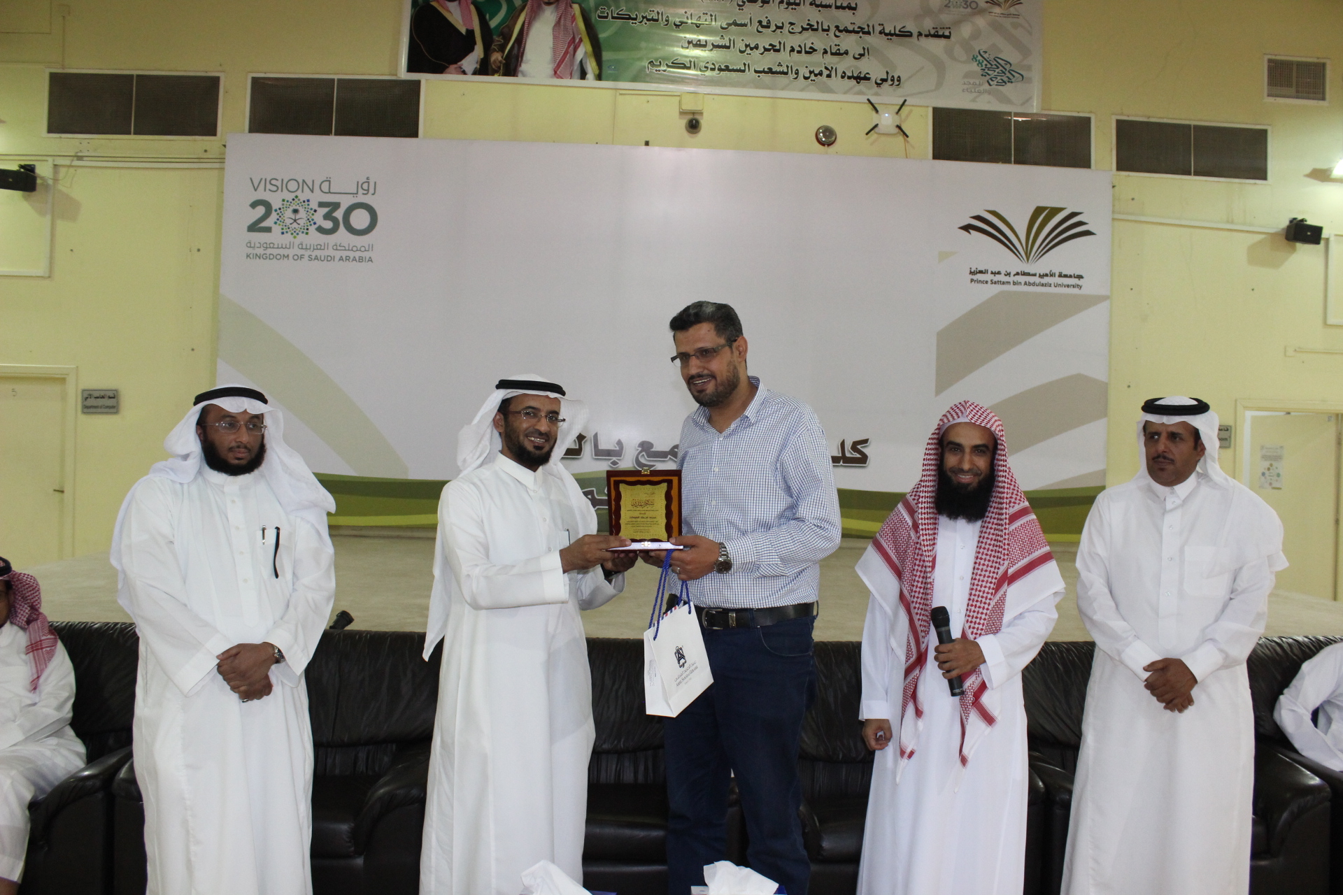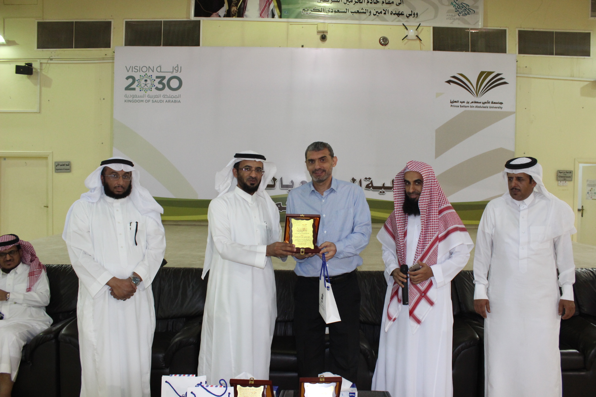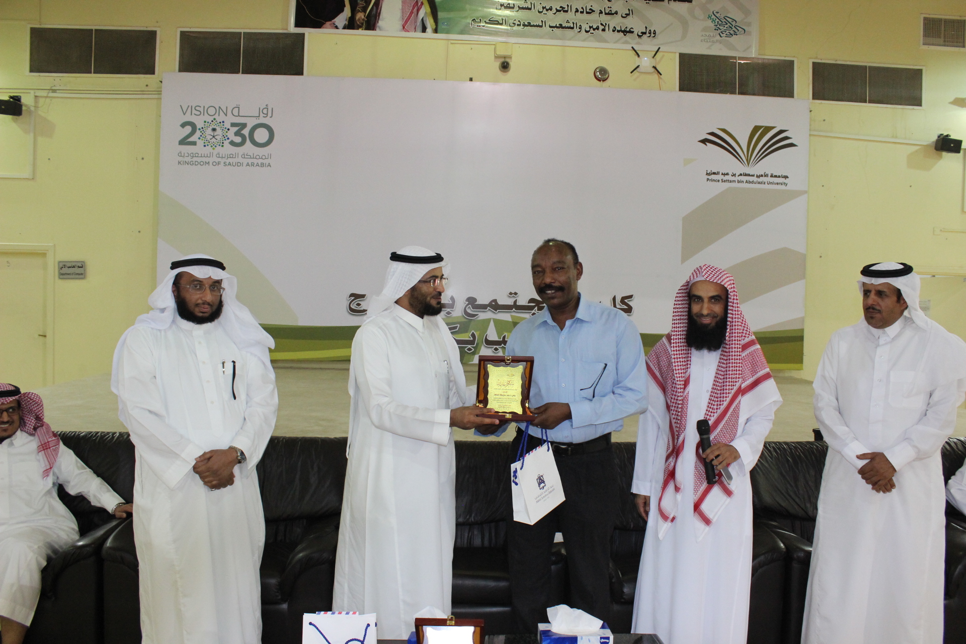 تحت رعاية سعادة عميد كلية المجتمع بالخرج د. حمد بن عبدالله القميزي أقامت وحدة العلاقات العامة بالكلية الحفل الختامي للعام الجامعي 1439/1440هـ بحضور كافة منسوبي الكلية ، وذلك يوم الأحد الموافق 30/8/1440هـ. وقد جاء هذا الحفل انطلاقًا من حرص الكلية على تكريم منسوبيها عما ما بذلوه من جهد خلال العام الدراسي وكذلك تكريم أعضاء هيئة التدريس الذين انتهت فترة تعاقدهم مع الكلية.وقد أستهل الحفل بكلمة لسعادة عميد الكلية أشار فيها إلى ما حققته الكلية من إنجازات متعددة خلال العام الجامعي 1439/1440هـ سواًء على مستوى الأنشطة الطلابية من خلال ما تم تقدميه داخل الكلية من فعاليات متنوعة في المجالات الثقافية والاجتماعية والرياضية أو من خلال المشاركة في كافة المسابقات والبطولات التي نظمتها عمادة شؤون الطلاب ، وقد حصدت فيها الكلية مراكز متقدمة بالإضافة إلى ما تم من إنجازات على مستوى البنية الأساسية للكلية من تطوير المعامل والقاعات الدراسية وتعزيز نقاط الإنترنت للطلاب وتوفير بوفيه ومكتبة للتصوير.كما أكد د. القميزي على أن الكلية مستمرة في تحقيق العديد من التطلعات المستقبلية والتي من أهمها الجودة والاعتماد الأكاديمي، وفتح برامج جديدة في التخصصات المختلفة مثل برنامج الترجمة، وبرنامج إدارة المشاريع، وبرنامج الوسائط المتعددة والتصميم الجرافيكي وغيرها من البرامج المتميزة التي يحتاجها سوق العمل.كما تقدم سعادة عميد الكلية بخالص الشكر والتقدير لكافة منسوبي الكلية على جهودهم المخلصة تجاه الكلية والجامعة وعلى ما وجده من ترابط بين أعضاء هيئة التدريس بعضهم البعض من ناحية وبين أعضاء هيئة التدريس والزملاء الموظفين من ناحية أخرى وأكد على أن سر نجاح أي مؤسسة لا يتحقق إلا بهذا الترابط والإخلاص في العمل.