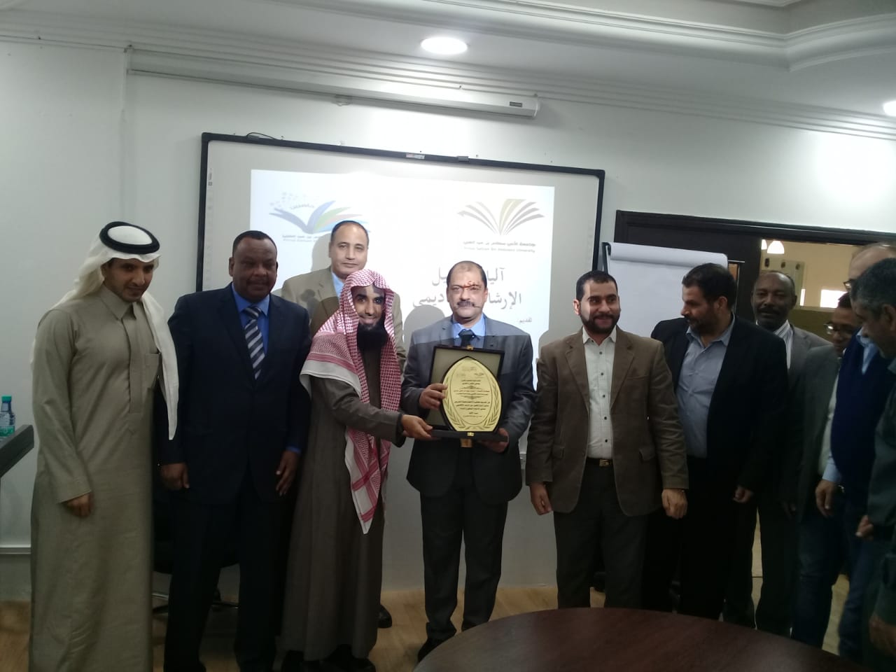في إطار اهتمام سعادة عميد كلية المجتمع بالخرج  بتفعيل دور الإرشاد الأكاديمي بالكلية لما له من دور جوهري في حل العديد من القضايا الطلابية وتحسين جودة العملية التعليمة نظمت وحدة النشاط الطلابي بالكلية لقاء لأعضاء هيئة التدريس بالكلية عن "آليات تفعيل دور المرشد الأكاديمي" وذلك يوم الأربعاء الموافق 25/5/1440هـ  قدمه لأستاذ/ حسام بدوى رئيس وحدة الإرشاد  الأكاديمي بعمادة السنة التحضيرية، وقد تناول اللقاء أهمية دور عضو هيئة التدريس كمرشد أكاديمي للطلاب وكذلك أهمية الإرشاد الأكاديمي للطالب الجامعي وآلية عمل ومرجعيات المرشد الأكاديمي ومهارات التعامل مع مشكلات الطلاب الأكاديمية وفي نهاية اللقاء توجه سعادة عميد الكلية د. حمد بن عبدالله القميزي  بالشكر للأستاذ حسام بدوى على ما قدمه من معلومات قيمة من شأنها مساعدة المرشدين الأكاديميين بالكلية في أداء مهامهم.