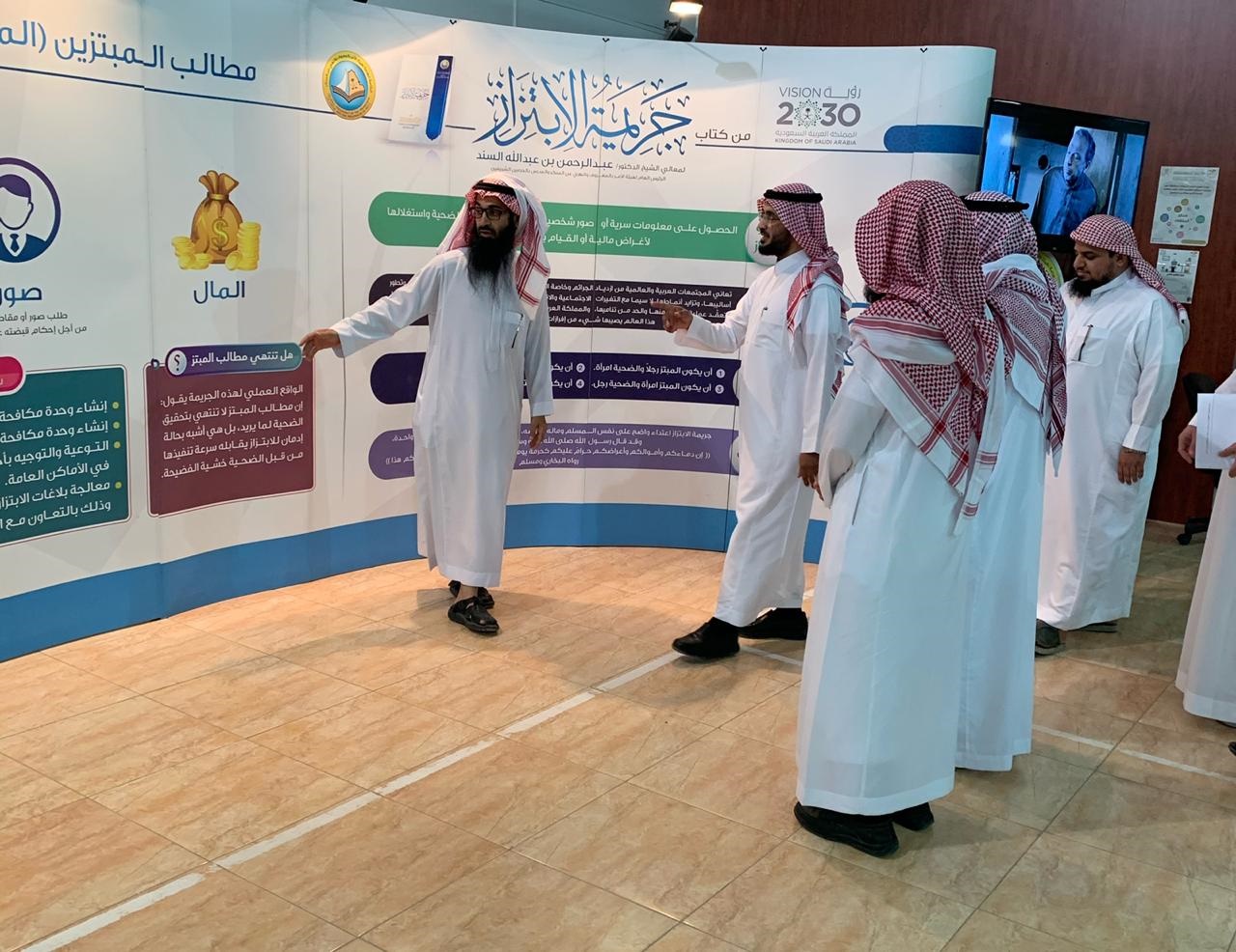 حرصًا من كلية المجتمع بالخرج على تدعيم أواصر الترابط والتعاون مع مؤسسات المجتمع المحلي وتنفيذًا لتوجيهات سعادة عميد الكلية د. حمد بن عبدالله القميزي بضرورة تعزيز الانتماء الوطني وغرس القيم الدينية لدي الطلاب نظمت وحدة خدمة المجتمع بالكلية بالتعاون مع هيئة الأمر بالمعروف والنهي عن المنكر معرض توعوي للطلاب وذلك خلال الفترة من 30/6 إلى 2/7/1441هـ وقد تتضمن المعرض تعريف الطلاب بجهود الهيئة ودورها في المجتمع حيث أشار أ. منصور الطاسان مسؤول المعرض إلى أن هيئة الأمر بالمعروف والنهي عن المنكر هي جهاز حكومي مستقل يرتبط مباشرة برئيس مجلس الوزراء وقد صدر التنظيم للرئاسة بقرار مجلس الوزراء رقم 289 بتاريخ 4-7-1437هـ وأن مهمتها الأساسية هي الأمر بالمعروف والنهي عن المنكر والحد من المخالفات للحفاظ على الدين والوطن وأن ذلك له أثر عظيم في حفظ الضروريات الخمس وهي الدين، والنفس، والنسب، والمال، والعقل. ويمكن لأي شخص التواصل مع الهيئة على مدار اليوم من خلال الرقم الموحد لتلقى البلاغات وهو 1909. كما أشار إلى أن الهيئة تقدم العديد من الخدمات من أهمها: خدمة مكافحة السحر والشعوذة والمساهمة في ضبط من يدعي القيام بها، وخدمة مكافحة المنكرات العامة وهي خدمة تقدم للمحافظة على الآداب الشرعية والنظم المرعية، والمساهمة في ضبط مرتكبي المخالفات وإحالتها إلى جهة الاختصاص وخدمة مكافحة الجرائم المعلوماتية وهي خدمة تقدم لمكافحة الاعتداء على المعلومات أو المحادثات أو الصور الخاصة بالأشخاص ونشرها في وسائل تقنية المعلومات لغرض التشهير أو لإلحاق الضرر بأصحابها. وبالإضافة إلى ذلك تقدم الهيئة خدمة مكافحة الابتزاز لمكافحة كل فعل يؤدي إلى تهديد شخص أو ابتزازه بالصور أو المحادثات أو العلاقات المحرمة لحمله على القيام بفعل مشين أو الحصول على أموال جراء تهديده. وفي نهاية المعرض، قدم الطلاب الشكر لهيئة الأمر بالمعروف والنهي عن المنكر فرع الخرج لما تقوم به من دورًا هامًا في ضبط وتقويم السلوك العام داخل المحافظة للحفاظ على الهوية الدينية وتعزيز الانتماء للوطن.