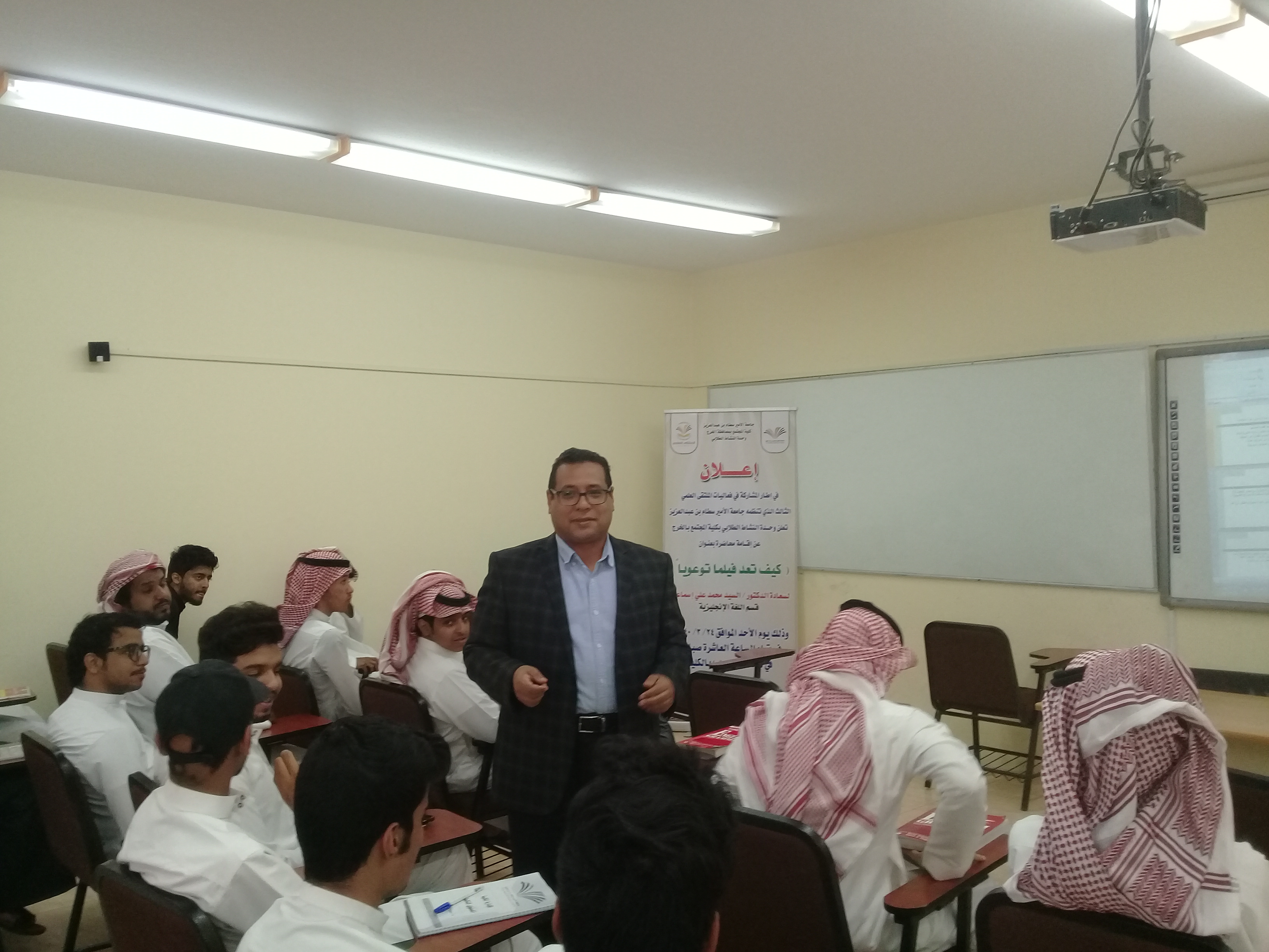 كلية المجتمع بالخرج تعرف الطلاب بإعداد الفيلم التوعوي في إطار الاستعداد للملتقى العلمي الثالث الذي تنظمه جامعة الأمير سطام بن عبد العزيز أقامت وحدة النشاط الطلابي بكلية المجتمع بالخرج تحت رعاية سعادة عميد الكلية الدكتور/ حمد بن عبد الله القميزي محاضرة تعريفية عن الأفلام التوعوية قدمها سعادة الدكتور/ السيد محمد إسماعيل وقد تناولت المحاضرة التعريف بالأفلام التوعوية والهدف منها، والشروط والضوابط التي يجب أن تتوافر فيها، كما تم عرض لبعض نماذج الافلام التوعوية ومناقشتها مع الطلاب للاستفادة منها في إعداد الافلام التوعوية التى سوف تشارك في الملتقى العلمي الثالث.وأهابت عمادة الكلية بالطلاب للمشاركة الفاعلة في محاور الملتقى العلمي، وأكدت دعمها الدائم للطلاب قبل وأثناء وبعد إعدادهم لهذه المشاركات.