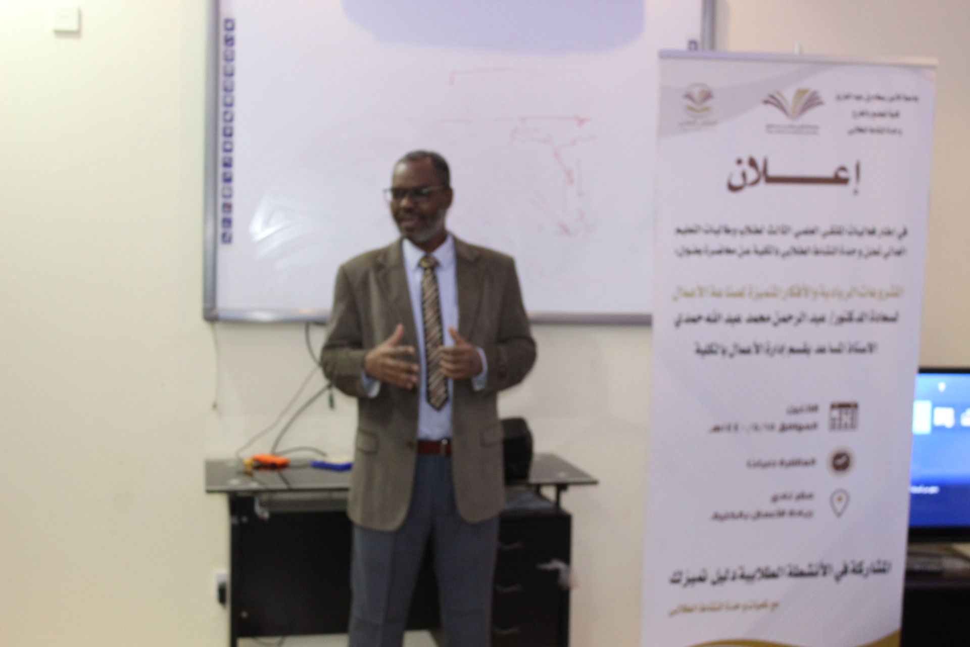 حرصًا من كلية المجتمع بالخرج على تفعيل مشاركات الطلاب في المحاور المختلفة للملتقى العلمي الثالث الذي تنظمه جامعة الأمير سطام بن عبد العزيز نظم نادي ريادة الأعمال بالكلية محاضرة بعنوان (المشروعات الريادية والأفكار المتميزة لصناعة الأعمال) وذلك يوم الاثنين الموافق 15/5/1440هـ وقد قدمها الدكتور/ عبدالرحمن محمد عبد الله حمدي الأستاذ المساعد بقسم إدارة الأعمال بالكلية وقد تناولت المحاضرة مفهوم الريادة وأهميتها في بناء اقتصاديات المجتمعات حيث تشير دائما إلى الاستحداث وابتكار أو تقديم شئ جديد في ميدان العمل فالريادة تتسم بخصائص الإبداع والمخاطرة، والنمو . كما تناولت المحاضرة خصائص رواد الأعمال والتي من أهمها الخصائص الشخصية مثل الحاجة إلى الإنجاز والرغبة في الاستقلال والتضحية والإيثار والنظرة المستقبلية. والخصائص السلوكية مثل: المهارات التفاعلية، مهارات التنقية. والخصائص الإدارية مثل: المهارات الفكرية، والمهارات الإنسانية، والمهارات الفنية.كما اشار الدكتور عبدالرحمن حمدي إلى أن الرائد الإداري يجب أن يتسم بالرؤية الواسعة، والمرونة في بناء فرق العمل، والمثابرة والمواظبة. ومن ناحية أخرى تناولت المحاضرة مقومات المشروع الناجح والتي من اهمها: الرغبة في إنجاز الأعمال المحافظة على استمرارية وديمومة المشاريع، والمحافظة على التدفقات النقدية، والبيع بكمية مناسبة لتحقيق الدخل المطلوب. وقد تقدم سعادة عميد الكلية / الدكتور حمد بن عبد الله القميزي بالشكر للدكتور/ عبد الرحمن حمدي على هذه المحاضرة التي تناولت موضوعًا هامًا في ضوء رؤية المملكة (20-30).