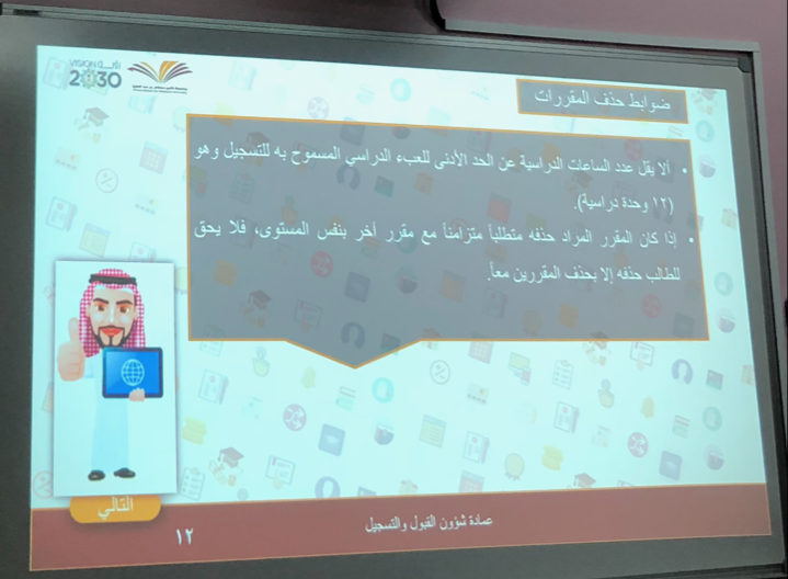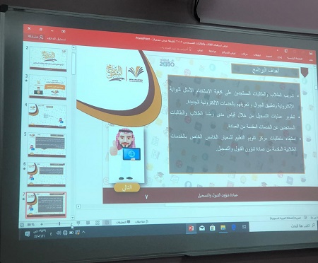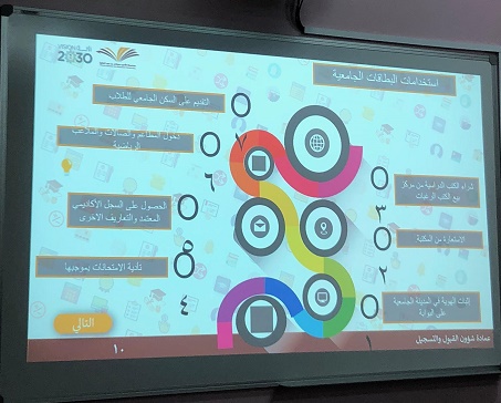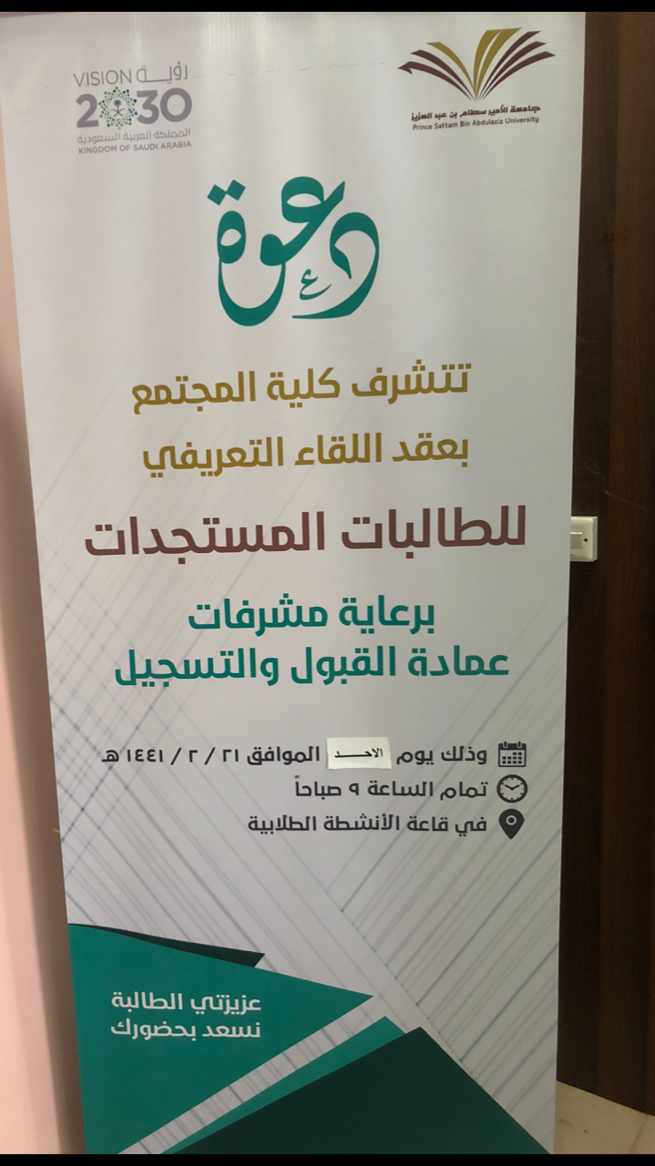 انطلاقاً من حرص عمادة القبول والتسجيل على تثقيف الطالبات بإجراءات القبول والتسجيل المتبعة في جامعة الأمير سطام بن عبد العزيز وبالتعاون مع كلية المجتمع بالخرج أقسام الطالبات وبإشراف مباشر من سعادة وكيلة الكلية الدكتورة/ أمينة بنت عبد الرحمن المشحن؛ عقدت الكلية يوم الأحد الموافق 21-2-1441هـ في قاعة الأنشطة الطلابية بالكلية "لقاء تعريفي للطالبات المستجدات"؛ بحضور مشرفات عمادة القبول والتسجيل بجامعة الأمير سطام بن عبد العزيز.وقد ابتدأ اللقاء بترحيب الأستاذة / هدى الجليفي، من عمادة القبول والتسجيل بالطالبات المستجدات بالكلية وبمنسوبات الكلية ثم تحدثت عن الهدف من اللقاء وهو تدريب الطالبات المستجدات على كيفية استخدام البوابة الإلكترونية فيما يخص القبول والتسجيل، وتدريبهن على كيفية استخدام تطبيق الجوال، وتعريفهن بالخدمات الإلكترونية المقدمة لهن،وتطرقت كذلك الى استخدامات البطاقة الجامعية، وضوابط الحذف والإضافة، والحرمان والغياب وآلية الاعتذار عن الدراسة أو عن مقرر دراسي.كما تناولت في اللقاء كيفية التقديم على تحويل من خلال البوابة الأكاديمية، وآلية متابعة الطلب، وكيف يمكن للطالبة ان تحصل على اختبار بديل، وكذلك تم القاء الضوء على كيفية حساب المعدل التراكمي للطالبة وكيفية التسجيل في الفصل الصيفي.وفي نهاية اللقاء تقدمت الأستاذ هدى الجليفي بخالص الشكر والتقدير لوكيلة كلية المجتمع ولمنسوبات الكلية على حرصهن على تقديم كل ما يعود على الطالبات بالفائدة وتعزيز وعيهن بإجراءات القبول والتسجيل.