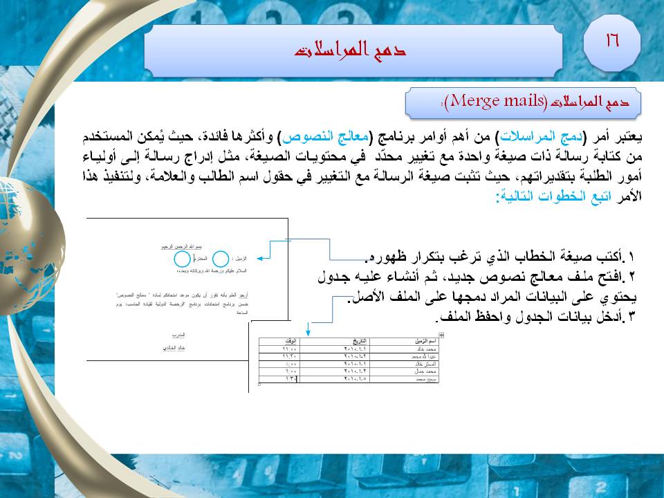 في إطار سعي الجامعة لتطوير مهارات منسوبيها من الموظفين والإداريين ؛ أقامت وحدة التطوير الإداري بكلية المجتمع بالخرج دورة تدريبية بعنوان: "برنامج معالجة النصوص المتقدمة " وذلك يوم الثلاثاء الموافق 08-03- 1441هـ في مقر الكلية للموظفين من تقديم الأستاذ/ كمال محمد الهادي عيادي المحاضر بقسم الحاسب الالي بالكلية ؛ وكانت الدورة في مجال التدريب على التطبيقات المكتبية.وقد تناول الاستاذ كمال خلال الدورة العديد من المحاور الهامة و كان منها: كيفية إدراج وتنسيق الجداول، البحث والاستبدال، دمج المراسلات البريدية، جداول المحتويات والفهارس. كما تم التطرق الى حماية المستندات عبر كلمات السر وكيفية تنسيق النصوص كأعمدة صحفية وطرق إدراج الأشكال والرموز الخاصة بتنسيقات معينة وإضافة العلامات المائية للمستندات وكيفية إدراج لقطات الشاشة. وفي نهاية الدورة تقدم الحضور بخالص الشكر إلى سعادة عميد الكلية د. حمد بن عبدالله القميزي على اهتمامه بمثل هذه الدورات النوعية التي تستهدف صقل خبرات الموظفين وتأهيلهم بشكل جيد لتطوير قدراتهم العملية.