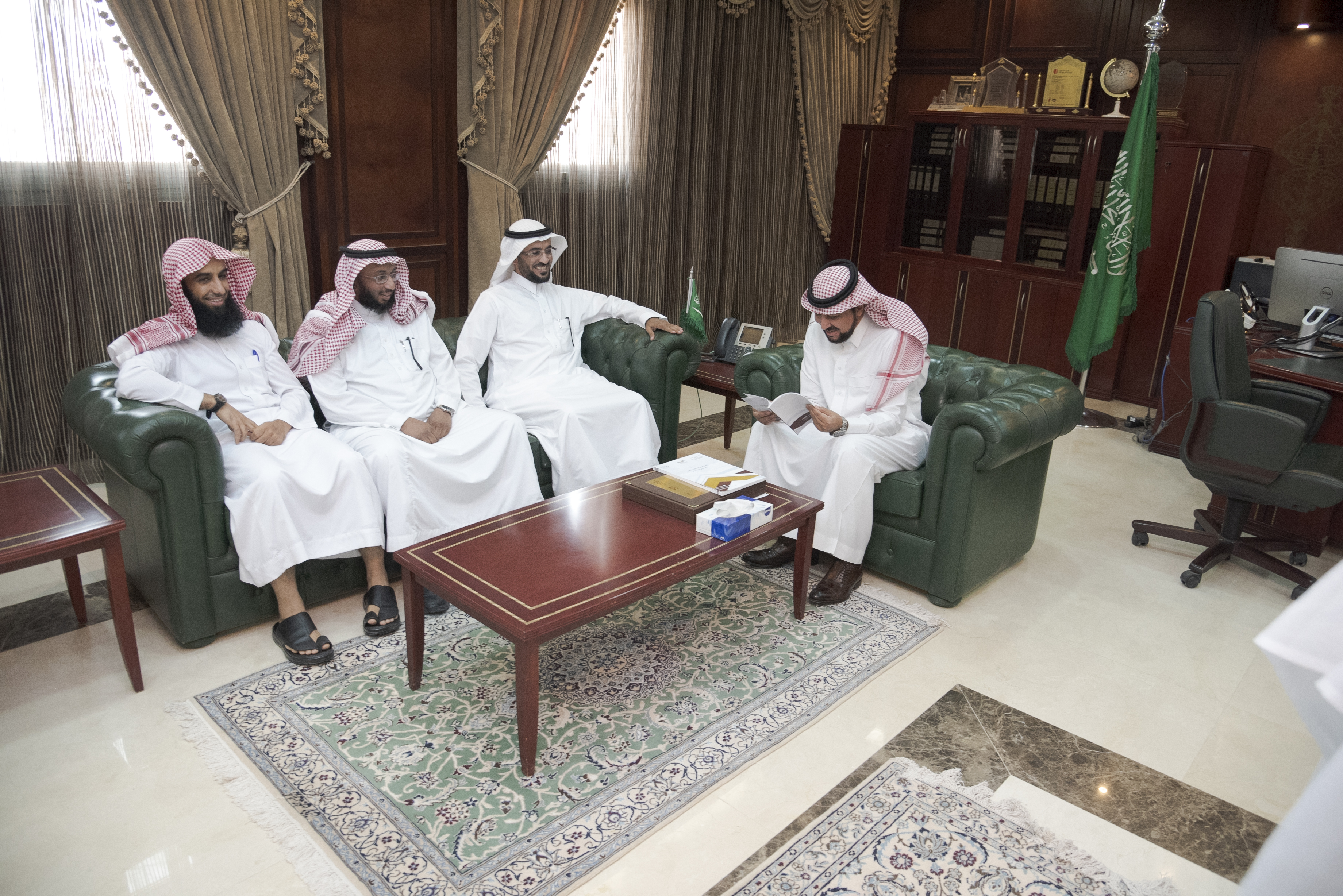 استقبل معالي مدير الجامعة أ.د. عبدالعزيز بن عبدالله الحامد في مكتبه ظهر يوم الأحد 9/1/1441هـ سعادة عميد كلية المجتمع بالخرج د. حمد بن عبدالله القميزي ويرافقه عدد من مسؤولي الكلية، وتسلم معاليه خلال اللقاء التقرير السنوي لكلية المجتمع بالخرج، والذي تضمن إنجازات الكلية خلال العام الجامعي 1439/1440هـ. وقد أشار معاليه إلى أهمية التقارير السنوية في توثيق الجهود، ورصد الإنجازات، ودورها الهام في تحقيق الدافعية لمزيد من النجاحات. وفي ثنايا اللقاء تم التطرق إلى دور كلية المجتمع الفاعل، وإسهاماتها البارزة في تحقيق رؤية الجامعة، من خلال مخرجاتها وبرامجها التي تلامس احتياجات سوق العمل، وأثرها في تكوين شخصية طلاب الكلية لخوض غمار العمل ومقابلة معتركات الحياة. وقد تناول اللقاء متطلبات الجامعة والكلية للمرحلة الحالية لبناء المجتمع المحلي ورفده باحتياجاته التنموية المتنوعة بما يحقق رؤية المملكة 2030. كما أوضح عميد الكلية د. القميزي ما حظيت به الكلية من دعم وتشجيع من معاليه أسهم في تحقيق الكلية لعدد من الإنجازات والنجاحات على مستوى الجامعة، ووعد معاليه بأن الكلية عازمة على التميز والإبداع وتحقيق الطموحات التي تتطلع لها قيادة الجامعة.وقد عبَّر معاليه عن شكره لعميد الكلية على الزيارة ولجميع منسوبي الكلية من أعضاء هيئة تدريس وموظفين وموظفات على ما يبذلونه من جهود كان لها الأثر الواضح في تحقيق إنجازات الكلية، وبدوره شكر سعادة العميد معاليه على ما يوليه للكلية من دعم ورعاية أسهمت بشكل فاعل في تحقيق الكلية لأهدافها ومنجزاتها.