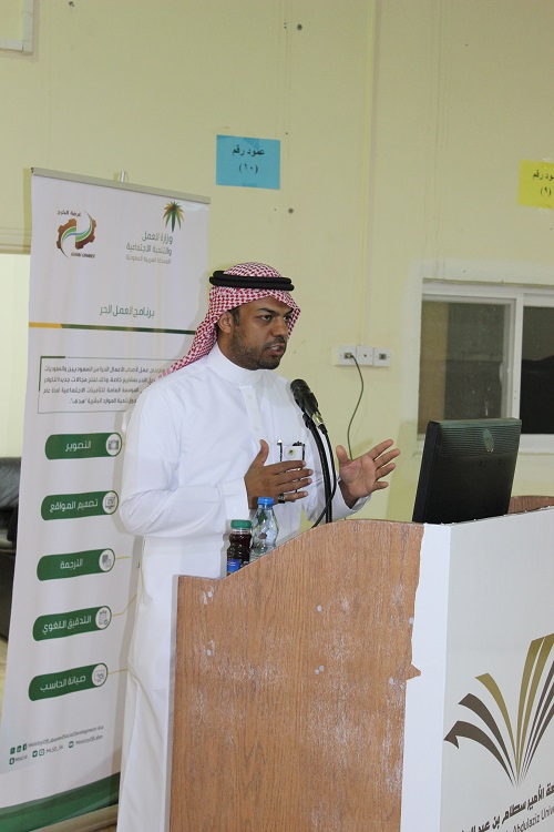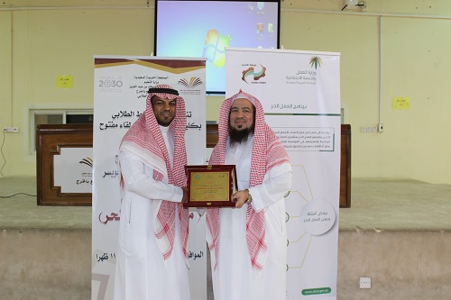 نظمت وحدة النشاط الطلابي بكلية المجتمع بالخرج لقاء مفتوح مع سعادة نائب مدير مكتب العمل بالخرج الاستاذ / خليل بن ابراهيم عبد العزيز الجوسير لمناقشة وثيقة العمل الحر حيث اشار سيادته إلى أن هذه الوثيقة تهدف إلى دعم وتعزيز العمل الحر بالمملكة من أجل توفير فرص عمل للسعوديين والسعوديات من خلال اجراءات سهلة وميسرة والاستفادة من الخدمات الأخرى الحالية كالتقديم على برنامج الدعم المخصص لممارسة العمل الحر المقدم من قبل (هدف) وكذلك الخدمات الأخرى المستقبلية التى قد يستفيد منها مصدر الشهادة ، ويتم الحصول على هذه الوثيقة مجاناً وتغطي الوثيقة مجموعة من التخصصات منها: مترجم محتوى، فنان تجميل، باحث سوق، مصمم مواقع، مهندس صوت، مطور PHP مدرب خصوصي، سكرتير. وقد اشار سعادته إلى أن الحصول على هذه الوثيقة يتم من خلال الدخول الى موقع بوابة وزارة العمل وإنشاء حساب جديد ثم اصدار الشهادة حسب مجال العمل المناسب وقد تم حتى الان اصدار ما يقرب من (4928) على مستوى المملكة ، بعد ذلك فتح باب النقاشات والإستفسارات عن تلك المبادرة ،كما اشار عميد الكلية إلى أهمية هذه الوثيقة حيث تفتح فرص عمل جديدة أمام الشباب، وحث سعادته الطلاب على ضرورة التسجيل في هذه الوثيقة حتى يكون لهم سبق الانتشار والاستفادة من المزايا المقدمة، وفي الختام تم تقديم درع تذكاري للأستاذ خليل على حضوره لهذا اللقاء .