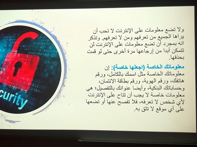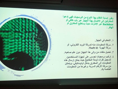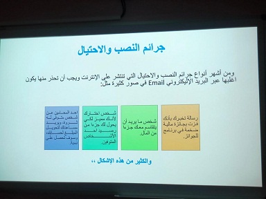أقامت وحدة تقنية المعلومات والتعلم عن بعد بالتعاون مع شعبة التدريب المهني بكلية المجتمع بالخرج يوم الأربعاء الموافق 15/6/1440هـ، وضمن فعاليات اليوم الثالث من الملتقى التقني الأول المقام بالكلية دوره تدريبيه بعنوان "مدخل الى الجرائم الإلكترونية" من تقديم الأستاذة/ سارة القحطاني. حيث هدفت المحاضرة إلى توضيح التعريف بمصطلح الجرائم الالكترونية وأسبابه والتعدي الالكتروني وأساليب التجسس والاحتيال بالإضافة الى تعريف الحضور بكيفية مكافحة الجرائم الإلكترونية وحماية بياناتهم وخصوصيتهم والتطرق الى سبل التواصل مع مؤسسات تحمي الفرد من الجرائم الالكترونية وانتهت المحاضرة بنصائح مهمه للحضور والإجابة على استفساراتهم. وقد أشار سعادة عميد الكلية الدكتور حمد القميزي أن الكلية تسعى إلى تعزيز وعي الطالبات بالعديد من الجوانب المعلوماتية والمهارية التي تسهم في تطوير حياتهم العلمية والعملية، ومن ذلك تعريف الطالبات بالجرائم الإلكترونية، حتى لا يقعوا فيها وكيفية الحذر منها. وأهاب د. القميزي بجميع الطالبات إلى توظيف التقنية ووسائل التواصل الاجتماعي فيما يعود عليهن بالنفع والفائدة.