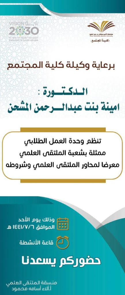 نوره دحيم شبيب الدوسريتزامنا مع استعداد كلية المجتمع بالخرج للملتقى العلمي الرابع الذي تنظمه عمادة شؤون الطلاب بجامعة الأمير سطام بن عبدالعزيز ؛ أقامت وحدة العمل الطلابي ممثله بشعبة الملتقى العلمي يوم الاحد الموافق 6-7-1441هـ معرض محاور الملتقى العلمي الرابع الذي يهدف إلى تشجيع الطالبات على المشاركة في محاور الملتقى العلمي المتنوعة .كما يهدف المعرض الى تعريف الطالبات بمحاور الملتقى العلمي التي تتكون من خمس محاور أقيم على نحوها خمس اركان تعرف بكل محور من المحاور. والتي شارك فيها مجموعة من أعضاء هيئة التدريس مع طالباتهم وهن :الأستاذة/ عزه النيل عبدالله (ركن محور البحث العلمي)الدكتورة /رفيده قمر الدوله محمد (محور المبادرات التطوعية)الأستاذة / عهد العتيبي (محور ريادة الأعمال)الأستاذة / نجلاء السبيعي (محور الأفلام التوعوية)الأستاذة /الاء اسامه( محور الابتكار والاختراع)وفي نهاية المعرض تقدمت سعادة وكيلة الكلية الدكتورة / أمينة بنت عبدالرحمن المشحن؛ بخالص شكرها للمشاركات في المعرض من منسوبات الكلية ولطالبات الكلية على مشاركتهن المتميزة في المعرض كما وضحت وكيلة الكلية للطالبات أهمية مشاركتهن في محاور الملتقى المتنوعة لما له من دور كبير في تنمية مواهب الطالبات في كآفة المجالات . وكيف استطاعت كلية المجتمع في الأعوام السابقة بفضل جهود طالباتها والدعم المقدم لهن من كآفة منسوبي الكلية من تحقيق مراكز متقدمة بحمد الله. سائلة الله أن يستمر إبداع طالبات كلية المجتمع هذا العام بإذن الله .