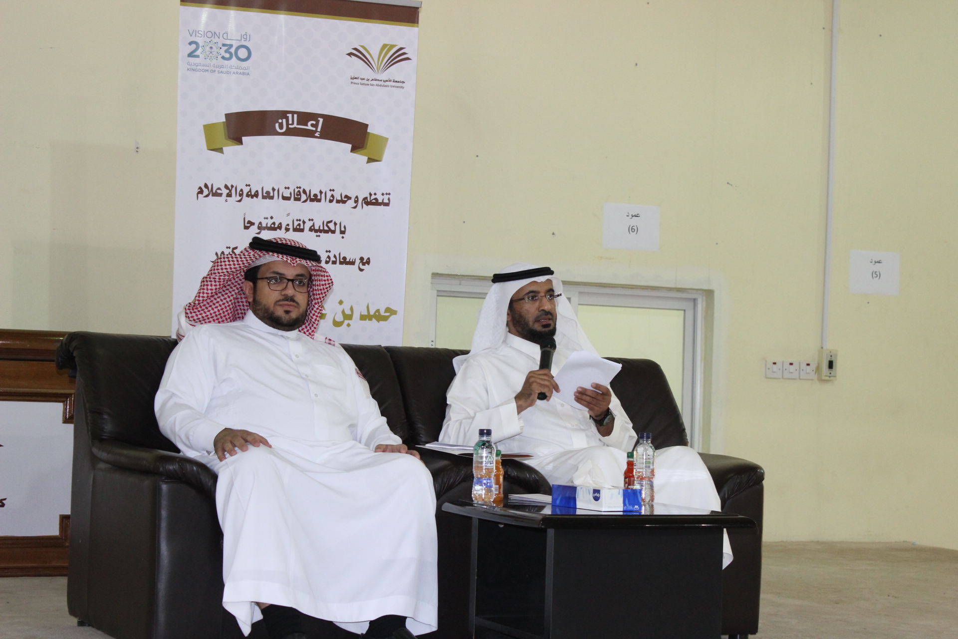 في إطار اهتمام سعادة عميد كلية المجتمع بالخرج بالالتقاء مع الطلاب نظمت وحدة النشاط الطلابي بالكلية المجتمع بالخرج لقاء مفتوحًا مع سعادة العميد وذلك يوم الأربعاء الموافق 22/6/1440هـ وقد أكد سعادة الدكتور/ حمد بن عبدالله القميزي على أن هذا اللقاء هو بمثابة لقاء الأب مع أبناءه الطلاب , وقد أكد سعادته ضرورة معرفة الطلاب لطبيعة الكلية التي ينتمون إليها من ناحية نشأتها والتخصصات المختلفة بها، والوظائف المتاحة لها في سوق العمل. كما أشار سعادته على أن الكلية تسعى إلى الدخول في شراكات مجتمعية مع مؤسسات المجتمع المحلي سواًء الأهلية أو الحكومية، والمساعدة في خدمة المجتمع بالإضافة إلى تطوير المهارات الأكاديمية والمهنية لأعضاء هيئة التدريس. كما تناول اللقاء التأكيد على أهمية التحصيل العلمي للطلاب وضرورة الحرص على تحصيل أعلى الدرجات ، وأهمية مراجعة الطالب لصفحته الأكاديمية باستمرار لمعرفة المعلومات الأكاديمية مثل معدلات الغياب، الأعذار، والحرمان ، والفصل الأكاديمي وكذلك اهمية الاهتمام بمعامل الكلية والحفاظ عليها ، وضرورة تواصل الطلاب مع المرشدين الأكاديميين من خلال وسائل التواصل المختلفة لمساعدتهم في حل المشكلات التي قد تؤثر على مستوى تحصيلهم الدراسي . ومن جانب أخر أكد سعادة العميد على ضرورة اهتمام الطالب بالانضباط في حضور المحاضرات من بدايتها وأن يسعى جاهدًا إلى تنمية مهارة التواصل مع الآخرين ، ومهارة العمل الجماعي خاصة وأنها مهارات يحتاج إليها سوق العمل دائما. كما اشار سعادته إلى ضرورة متابعة الطلاب لموقع الكلية الالكتروني ، وحساب الكلية على توتير لمتابعة كل ما هو جديد عن الكلية والرد على الاستفسارات المختلفة . قام سعادة العميد بالاضافه على تساؤلات الطلاب , وفي نهاية اللقاء أعرب الطلاب عن شكرهم وتقديرهم لسعادة الدكتور / حمد بن عبدالله القميزي على هذا اللقاء وكل ما قدمه من معلومات ونصائحه لهم.