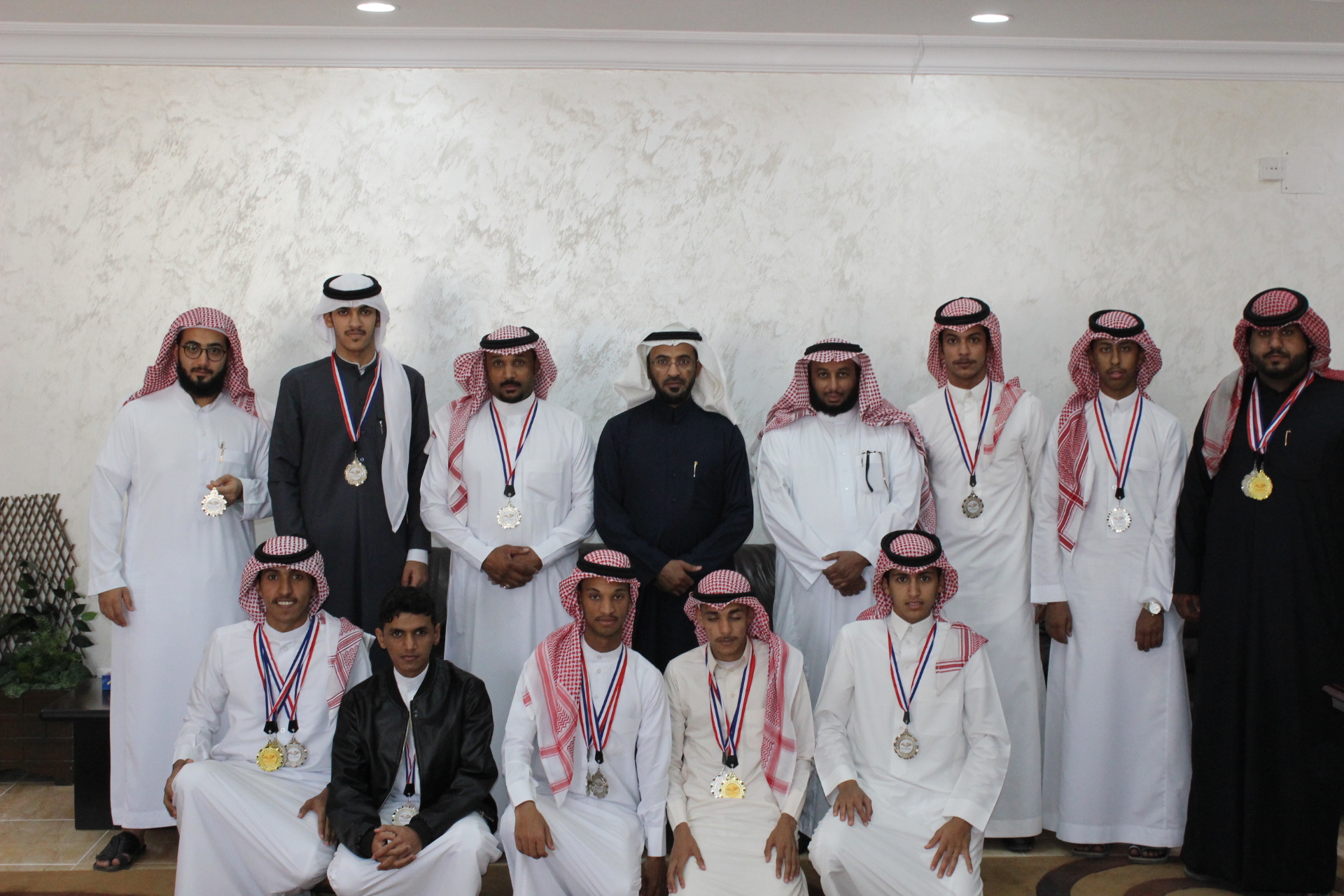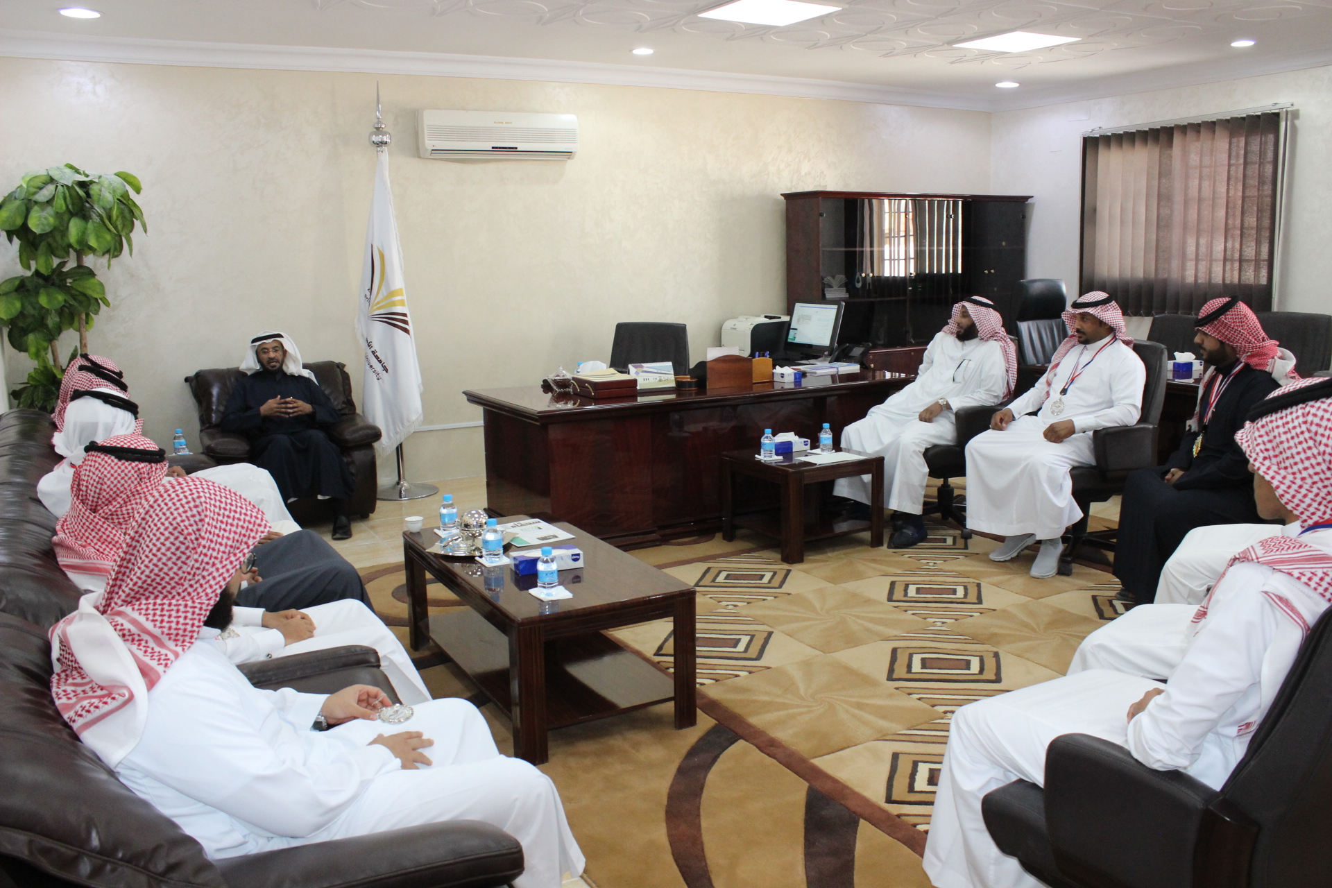 استقبل سعادة عميد كلية المجتمع بالخرج الدكتور/ حمد بن عبدا لله القميزي الطلاب المشاركين في بطولة العاب القوى بالجامعة بعد حصولهم على المركز الثالث على مستوى كليات الجامعة , وتقدم بالشكر للمشرف على النشاط الرياضي بالكلية الأستاذ/ عبد اللهإبراهيم اليحياء وكذلك لكل الطلاب المشاركين في البطولة , وحثهم على بذل المزيد من الجهد لحصد المراكز المتقدمة على مستوى الجامعة، وقد قام سعادته بتكريم المشاركين في البطولة .وأشار سعادة عميد الكلية أن الكلية تولي الأنشطة الطلابية اهتماماً خاصاً لما لها دور بارز في تنمية مواهب الطلاب وتعزيز قدراتهم المختلفة , وحث جميع الطلاب والطالبات على المشاركة في الأنشطة الطلابية التي تقدمها الجامعة والكلية .