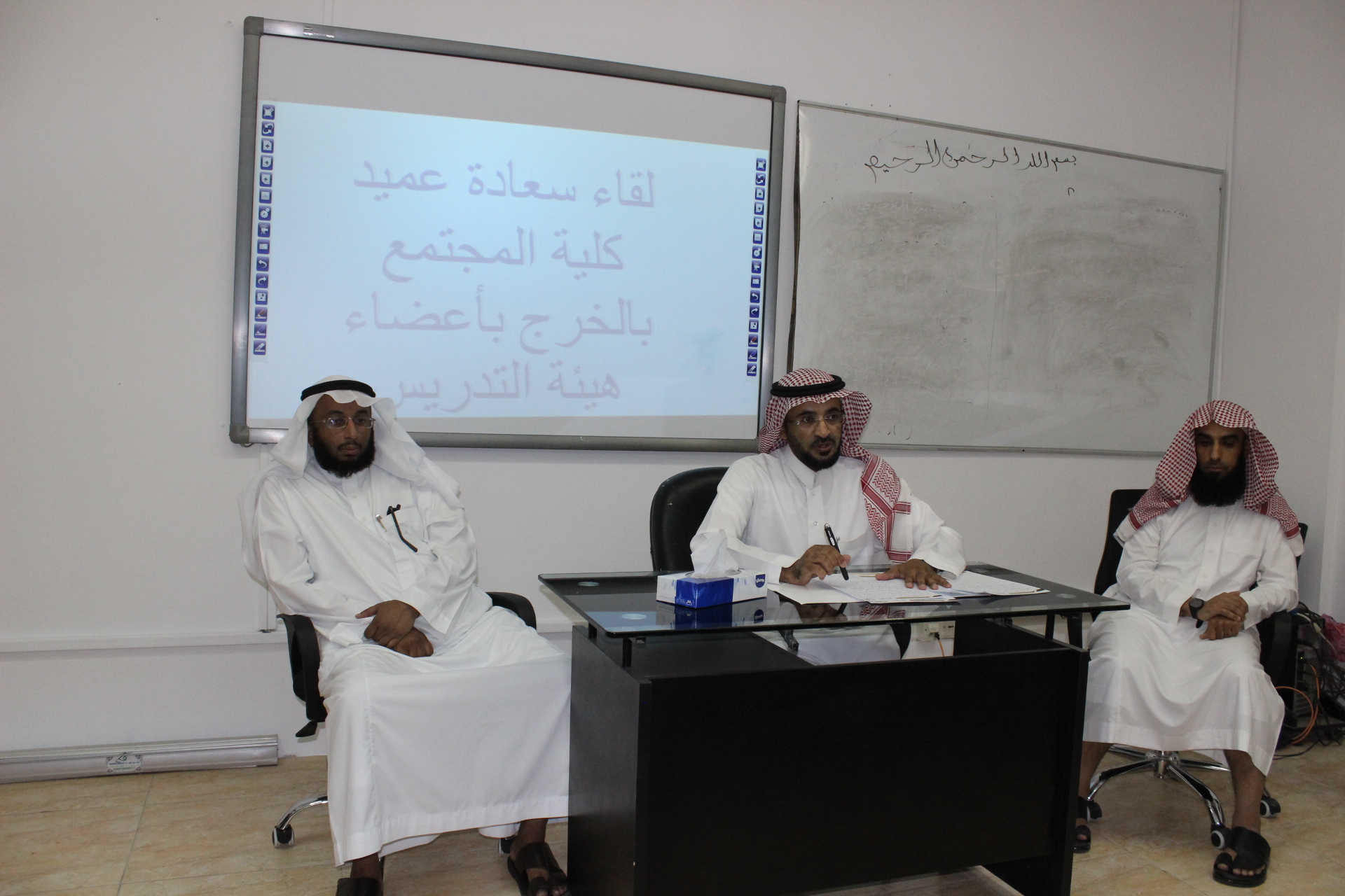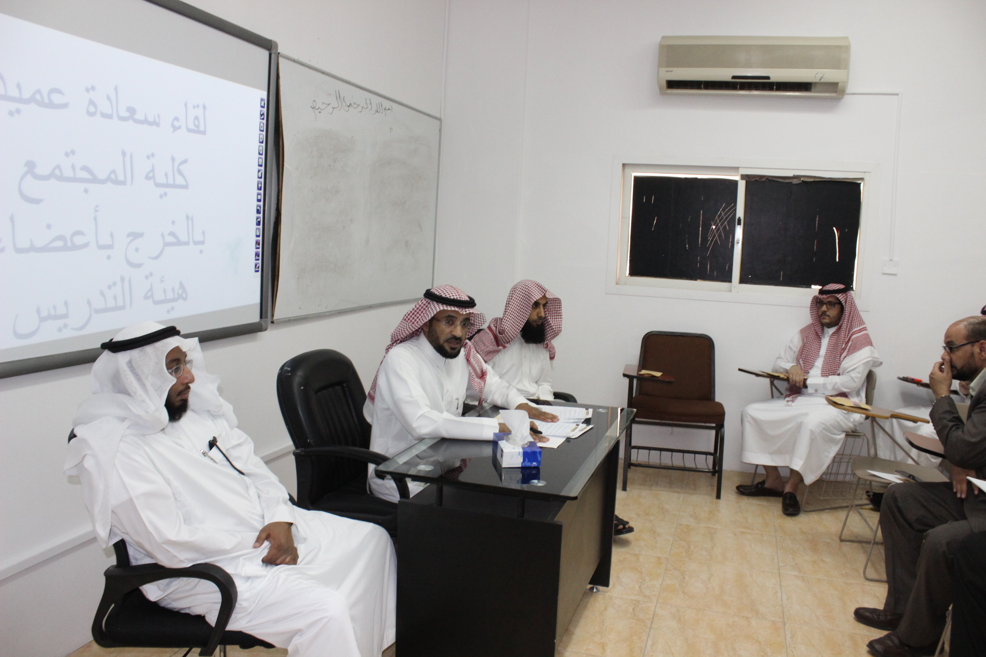 استمراراً للأنشطة و البرامج الدورية التي تنفذها كلية المجتمع بالخرج؛ وانطلاقاً من الاهتمام بتعزيز الأواصر والاستماع لمنسوبي الكلية من أعضاء هيئة تدريس والموظفين، عقد سعادة عميد كلية المجتمع الدكتور/ حمد بن عبدالله القميزي لقاءً مفتوحاً مع أعضاء هيئة التدريس، شكر فيه سعادته معالي مدير الجامعة ووكلاءها على ما يولونه من اهتمام دائم في السعي لتطوير العملية التعليمية وما يولونه من اهتمام خاص بكلية المجتمع بالخرج، كما ثنى بالشكر لسعادة وكيل الجامعة للشؤون التعليمية والأكاديمية على زيارته للكلية وما لمسته الكلية من الاهتمام من سعادته.ثم رحب سعادته بأعضاء هيئة التدريس الجدد، واستعرض سعادته جملة من النقاط التي تهم الكلية والعملية التعليمية والحث على العمل بروح الفريق الواحد للسعي بتطوير الكلية والاهتمام بالطلاب وتحفيزهم لبذل الجهد والمثابرة لتحقيق الأهداف التي من أهمهما تأهيل كوادر تخدم في سوق العمل بما يحقق رؤية الجامعة ورسالتها. كما أشار سعادته إلى ضرورة اهتمام عضو هيئة التدريس بالطلبة المتدربين والاهتمام بهم لصقل مواهبهم وتهيئتهم لسوق العمل.وفي ختام لقاء سعادته استمع لمقترحات أعضاء هيئة التدريس، كما استمع لتساؤلاتهم وأجاب عليها.