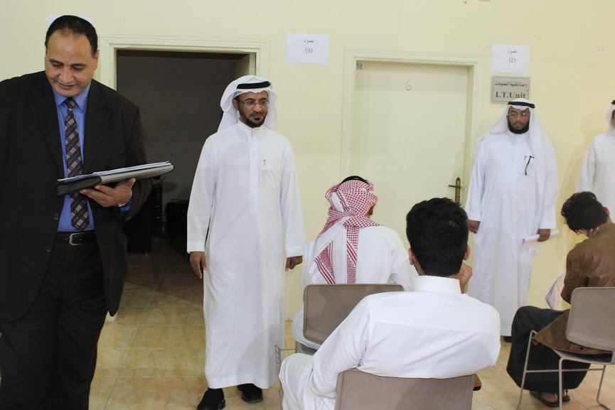 عميد كلية المجتمع بالخرج يشرف على بدء الاختبارات بإشراف ومتابعة من سعادة عميد الكلية الدكتور / حمد بن عبدا لله القميزي  و وكيل الكلية الدكتور / ناصر بن راشد الشيحان  بدأت اختبارات طلاب الكلية للفصل الدراسي الأول للعام الجامعي 1439-1440هـ . حيث أشرف سعادته على سير اختبارات الطلاب بالقاعة الرئيسية للامتحانات , كما اطلاع على نماذج من اختبارات الطلاب والتحدث معهم في أساليب تقديم الاختبارات , وتمنى لجميع الطلاب  التوفيق والنجاح . البوم الصور