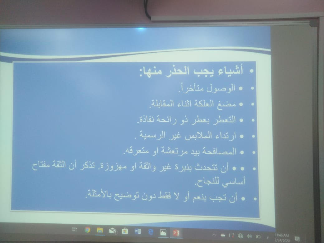 نوره دحيم شبيب الدوسري نظمت وحدة التدريب الطلابي بكلية المجتمع بالخرج قسم إدارة الاعمال بإشراف الدكتورة /خضرة حسن علي صديق ؛ سلسلة من الدورات التدريبية التي تهدف إلى تدريب طالبات الكلية وتهيئتهن لسوق العمل بعد تخرجهن بإذن الله .حيث أقيمت دورة تدريبية بعنوان: "كيف تجتازي المقابلة الشخصية؟"، من تقديم الدكتورة/ شيراز محمد ، واشتملت الدورة على عدد من المحاور كان من أهمها:- تعريف المقابلة الشخصية.-الأسئلة المتوقعة في المقابلة الشخصية.- أشياء يجب الحذر منها عند اجراء المقابلة الشخصية .- أسئلة المقابلات الشخصية.- كيف تردي بذكاء على الأسئلة.- كيف تتجنبي فشل المقابلة الشخصية.وتهدف الدورة إلى تدريب الطالبات على المهارات المطلوبة لاجتياز المقابلة الشخصية، وتعريف الطالبة بأنواعها وطرق الاستعداد لها وإبراز أهمية المقابلة الشخصية وأنها تعتبر بمثابة الخطوة الأولى للقبول في أي وظيفة يتم التقدم لها. وفي نفس السياق أقيمت دورة تدريبية بعنوان "ريادة الأعمال والمشروعات الصغيرة "قدمتها الدكتورة / خضرة حسن علي؛ المشرفة على التدريب الطلابي بقسم إدارة الاعمال بالكلية ، تحدثت فيها عن التعريف بريادة الاعمال وكيفية صناعة الفكرة وابتكار أساليب جديدة لتطويرها والسمات الأساسية لرائد الاعمال الناجح وأهم الاختلافات بين ريادة الأعمال و المنشآت الصغيرة وابرز العقبات والمخاطر التي تواجه رواد الأعمال ، كما تحدثت عن عناصر ريادة الأعمال وطرحت مجموعة أفكار وابتكارات في هذا المجال عرضتها على طالبات الكلية اللاتي ساهمن بمشاركات رائعة ونقاش ثري ومفيد وتناولت الدكتورة كذلك الاقتصاد المعرفي وكيفية تحويل المعرفة والتقنية من نشاط الى واقع اقتصادي يخدم المجتمع والدولة.وتأتي هذه الدورات في ظل الاهتمام الذي تقدمه كلية المجتمع الخرج لطالباتها بصفه عامة وطالبات التدريب الطلابي بصفة خاصة لتهيئتهن لسوق لعمل وفق توجيهات من سعادة عميد الكلية الدكتور / حمد بن عبدالله القميزي ومتابعة وكيلة الكلية الدكتورة /أمينة المشحن .