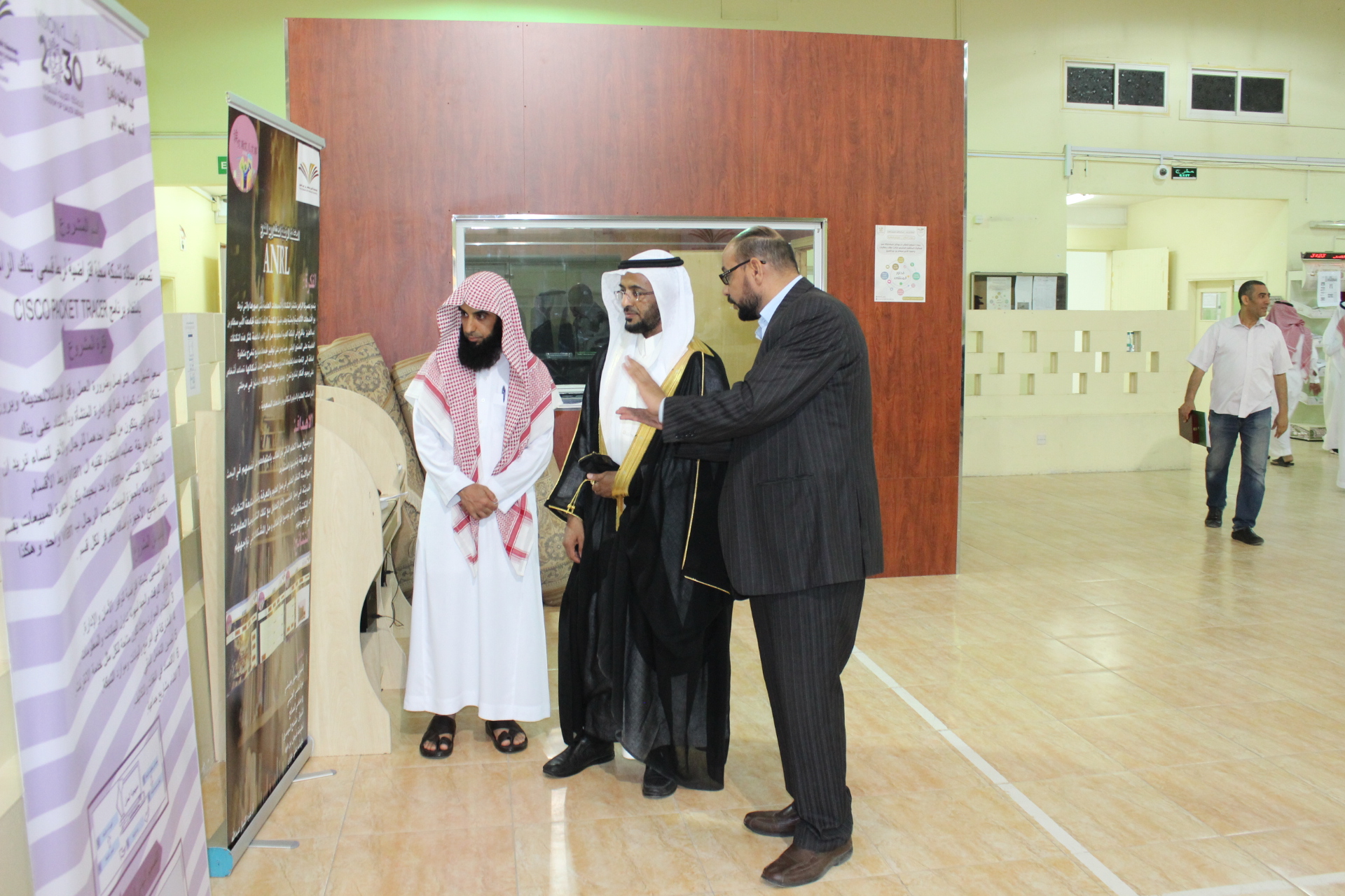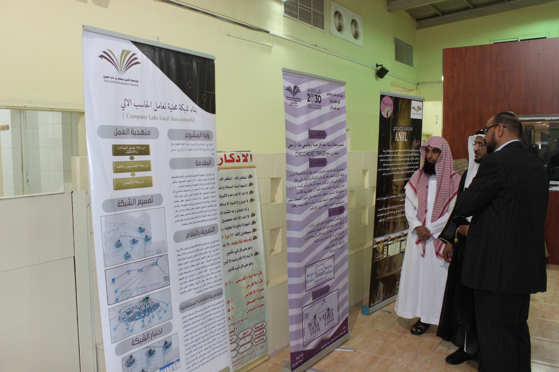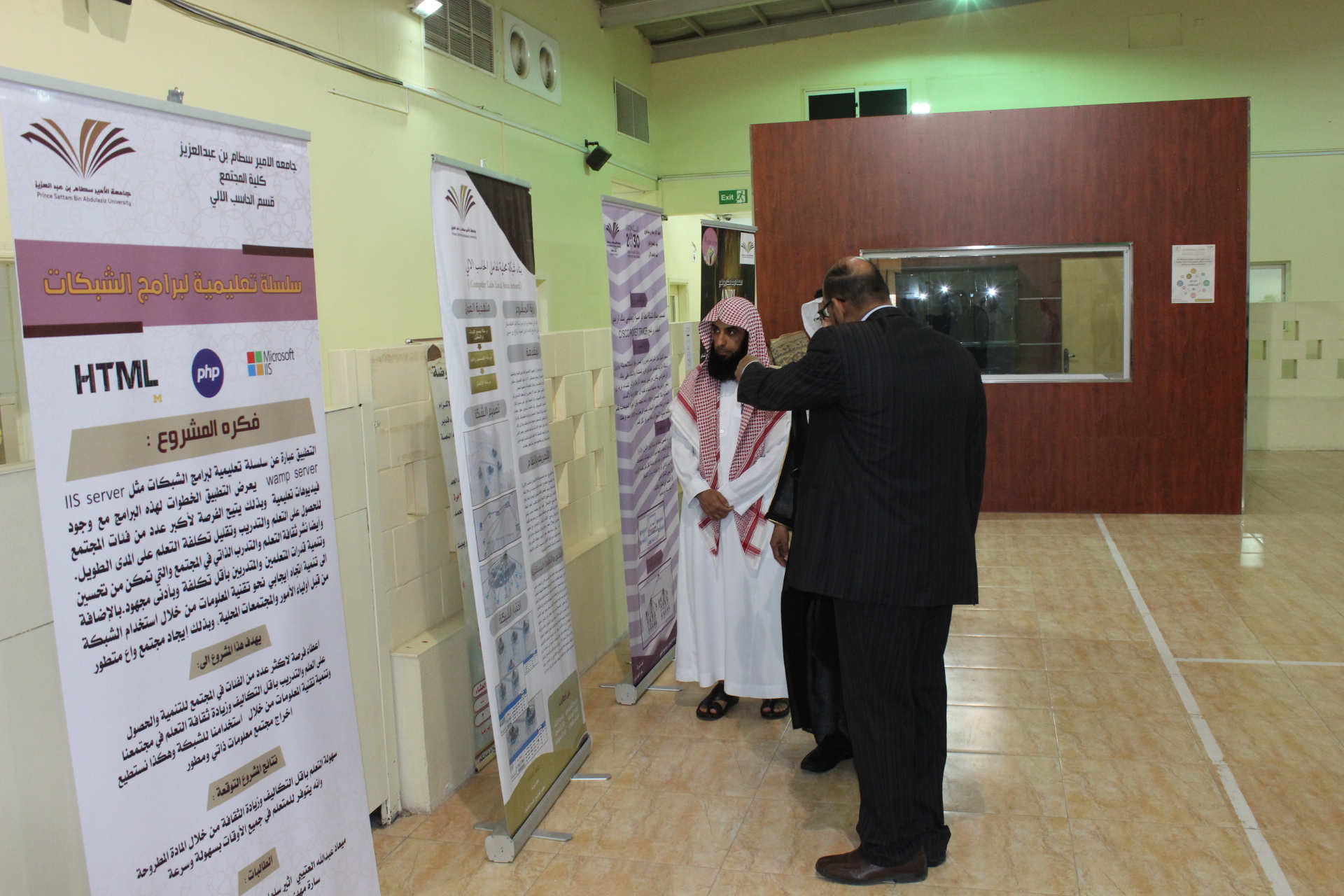 بمتابعة سعادة عميد كلية المجتمع بالخرج الدكتور/ حمد بن عبدالله القميزي تم مناقشة مشاريع التخرج بقسم الحاسب الآلي للفصل الدراسي الثاني من العام الجامعي 1439 /1440 هــ لشطر الطالبات لبرنامج البرمجة وعلوم الحاسب وبرنامج الشبكات والإنترنت وذلك يومي والأربعاء والخميس الموافق 5-6 / 08 /1440 هــ ، وكان عدد مشاريع التخرج لهذا الفصل (12) مشروع، ستة مشاريع في تخصص الشبكات والإنترنت كما يلي: المشروع الأول: سلسلة تعليمية لبرامج الشبكات ، المشروع عبارة عن سلسلة تعليمية لبرامج الشبكات مثل IIS server , wamp server يعرض التطبيق الخطوات لهذه البرامج مع وجود فيديوهات تعليمية وبذلك يتيح الفرصة لأكبر عدد من فئات المجتمع للحصول على التعلم والتدريب وتقليل تكلفة التعلم على المدى الطويل. وأيضا نشر ثقافة التعلم والتدرب الذاتي في المجتمع والتي تمكن من تحسين وتنمية قدرات المتعلمين والمتدربين بأقل تكلفة وبأدنى مجهود.بالإضافة الى تنمية اتجاه إیجابي نحو تقنية المعلومات من خلال استخدام الشبكة من قبل أولياء الأمور والمجتمعات المحلية، وبذلك إیجاد مجتمع واع متطور،المشروع الثاني: الخيار الأفضل، المشروع هو موقع الكتروني يحوي معلومات عن المطاعم الموجودة داخل محافظة الخرج من حيث نوع المطعم وتقييمه والأصناف الموجوده داخل كل مطعم. وهذا الموقع يعتبر كدليل إلكتروني للسياح القادمين من خارج المحافظة حيث يوفر عليهم الجهد والوقت في معرفة المطاعم المتوفرة داخل المحافظة. هذا الموقع يتيح لمرتاديه خذمة كتابة الملاحظات والاقتراحات بيسر وسهولة، المشروع الثالث: المشغل المتنقل، المشروع عبارة عن موقع الكتروني يستهدف فئة النساء خاصة حيث يوفر لهم الخدمات المتعلقة بالتجميل والعناية من خلال الحجز وتحديد الخدمة عبر الموقع الإلكتروني ومن ثم الذهاب لبيت الزبونة وتقديم الخدمة لها. يوفر المشغل المتنقل الخدمات الخاصة بالشعر والوجه. وتظهر أهمية المشغل المتنقل بشكل خاص للزبائن من ذوي الاحتياجات الخاصة حيث يوفر عليها صعوبة الذهاب للمشغل لحجز الخدمة وتقديمها لها في منزلها، المشروع الرابع: تصميم ومحاكاة لشبكة محلية افتراضية لربط قسمي بنك الراجحي باستخدام برنامج Cisco Packet Tracer ، هدف المشروع تصميم شبكه محليه افتراضيه لربط قسمي بنك الراجحي براوتر واحد و باستخدام تقنيه ال vlan من خلال برنامج Cisco packet tracer وذلك من أجل التطوير على طريقة عملهما حيث تم ربط الأقسام المتشابهه بكلا القسمين بvlan واحد بحيث يكون أجهزة المبيعات بقسم النساء مربوطة بأجهزة المبيعات بقسم الرجال ب vlan واحد وهكذا بالنسبة لجميع الأجهزة واضافه سيرفر لكل قسم وذلك من أجل توفير الأمان والإدارة وايضا توفيرا للوقت والجهد لسهولة تداول البيانات والمعلومات، المشروع الخامس: MyTable ، هدف المشروع تصميم موقع ويب خصيصا للمطاعم ومن خلال هذا التطبيق يستطيع عملاء المطاعم حجز الطاولات مسبقا ، والتعرف على قوائم الطعام والطلب والدفع اونلاين .. و كذلك يستطيع العملاء أن يوفروا على أنفسهم وقتٌ طويل و ذلك بتفادي الازدحام في انتظار الصف في المطاعم و أيضا يستفيد المطعم بخدمه الزبائن بشكل أسرع و منظم، المشروع السادس: ربط اجهزة معامل الحاسب الالي بكلية المجتمع بشبكه محليه ، هدف المشروع ربط اجهزة الحاسب وملحقات المعمل بشبكة محليه وذلك لزيادة كفاءة الشبكة وجودتها ولزيادة سرعة نقل البيانات وتبادلها بين المعامل وتقليل الوقت والجهد، وستة مشاريع في تخصص البرمجة وعلوم الحاسب كما يلي: المشروع الأول: المكتبة الرقمية لمشاريع التخرج - جامعة الأمير سطام بن عبدالعزيز، هدف المشروع تطبيق المكتبة الرقمية التابعة لجامعة الأمير سطام بن عبدالعزيز بالخرج في المملكة العربية السعودية الى ترسيخ مبدأ التعليم الذاتي لدي الطلاب باعتمادهم على أنفسهم في البحث عن المعرفة من خلال توفير خدمات مشاريع تخرج متطورة ، بالإضافة إلى إتاحة مصادر لمعلومات المشاريع وبحوث التخرج بمختلف أشكالها والإستفادة من خبرات الخريجين والب