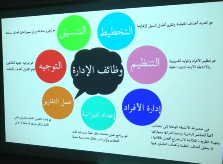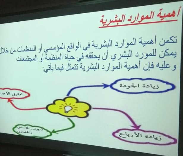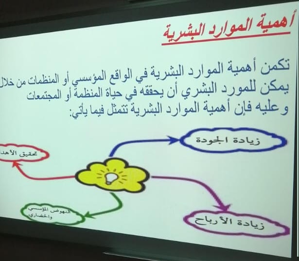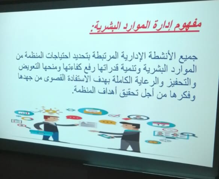 برعاية سعادة وكيلة كلية المجتمع بالخرج الدكتورة/ أمينة بنت عبد الرحمن المشحن؛ أقامت وحدة العمل الطلابي متمثلة بقسم الأنشطة الاجتماعية والثقافية، دورة تدريبية بعنوان "إدارة الموارد البشرية" من تقديم المدربة/ جهير سالم الدوسري؛ وذلك يوم الأربعاء الموافق 17/ ٢/ ١٤٤١هـ في قاعة الأنشطة الطلابية بالكلية.وتهدف الدورة إلى تعريف المشاركات بمفهوم إدارة الموارد البشرية وأنشطتها الرئيسية وإكسابهن مهارات التوظيف الأمثل للموارد البشرية. حيث تطرقت المدربة إلى عدد من المحاور كان من أهمها/مفهوم الإدارة ووظائفها.إدارة الموارد البشرية وأهدافها وأهميتها.أنشطة الموارد البشرية.السمات المميزة لموظف الموارد البشرية الناجح.تحديات الموارد البشرية.كما صاحبت الدورة عدد من الأنشطة الخفيفة والتدريبات البسيطة التي شجعت عدد من الطالبات للمشاركة في محاور الدورة وابداء آرائهن ووجهات نظرهن حول موضوع الدورة.