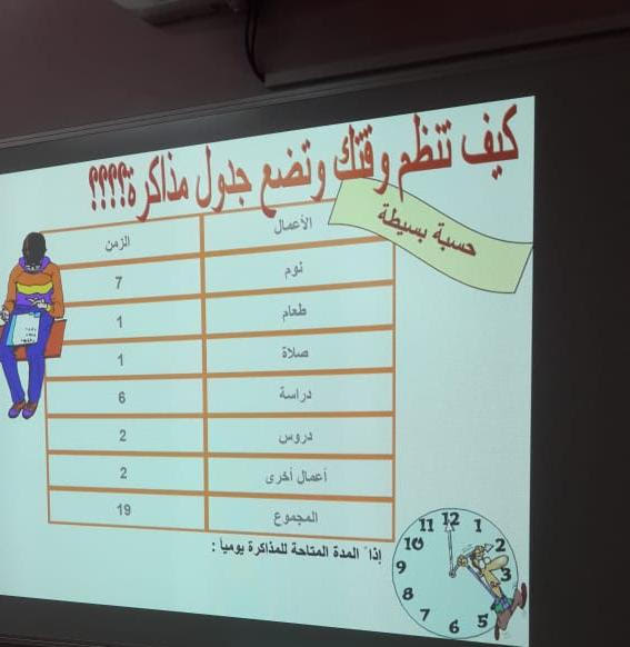 برعاية وكيلة كلية المجتمع بالخرج الدكتورة/ أمينة بنت عبدالرحمن المشحن، أقامت وحدة العمل الطلابي بالكلية قسم الأنشطة الاجتماعية والثقافية دورة تدريبية بعنوان (مهارات التفوق الدراسي) من تقديم الأستاذة/ أفنان الرفاعي، وذلك يوم الأربعاء الموافق ٣/ ٢/ ١٤٤١هـ في تمام الساعة العاشرة صباحاً في قاعة الأنشطة الطلابية بالكلية.وقد اشتملت الدورة على عدة محاور كان من أهمها:-التعريف بالتفوق. - أسس ومهارات التفوق.-مهارات التخطيط الدراسي.-مهارة القراءة المتعمقة.-مهارة التركيز.-مهارة الإنصات.-مهارة الحفظ المتقن.-مهارة المراجعة.-مصطلح الاستذكار الجيد.واشتملت الدورة كذلك على عدد من الأنشطة التدريبية المتنوعة ومداخلات من قبل الطالبات وطرح تجاربهن في الاستذكار. وانتهت الدورة التدريبية بالإجابة على اسئلتهن واستفساراتهن حول موضوع الدورة.