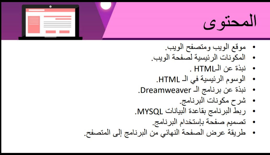 برعاية سعادة وكيلة كلية المجتمع بالخرج الدكتورة/ أمينة بنت عبدالرحمن المشحن، أقام نادي الإبداع بالكلية يوم الأربعاء الموافق / 24-2-1441هـ؛ دورة تدريبية بعنوان "تصميم صفحات الويب باستخدام "Dreamweaverمن تقديم الأستاذة /آلاء أسامه محمود. وقد تناولت الأستاذة في الدورة التدريبية عدد من المحاور الهامة كان منها:• موقع الویب ومتصفح الویب.• المكونات الرئيسية لصفحة الویب.• نبذة عن الـHTML.• الوسوم الرئيسية في الـ HTML.• نبذة عن برنامج الـ Dreamweaver.• شرح مكونات البرنامج.• ربط البرنامج بقاعدة البیانات MYSQL.• تصمیم صفحة باستخدام البرنامج.• طريقة عرض الصفحة النهائي من البرنامج إلى المتصفح.وفي نهاية الدورة التدريبية أجابت الأستاذة آلاء عن استفسارات الطالبات حول محاور الدورة التدريبية.
