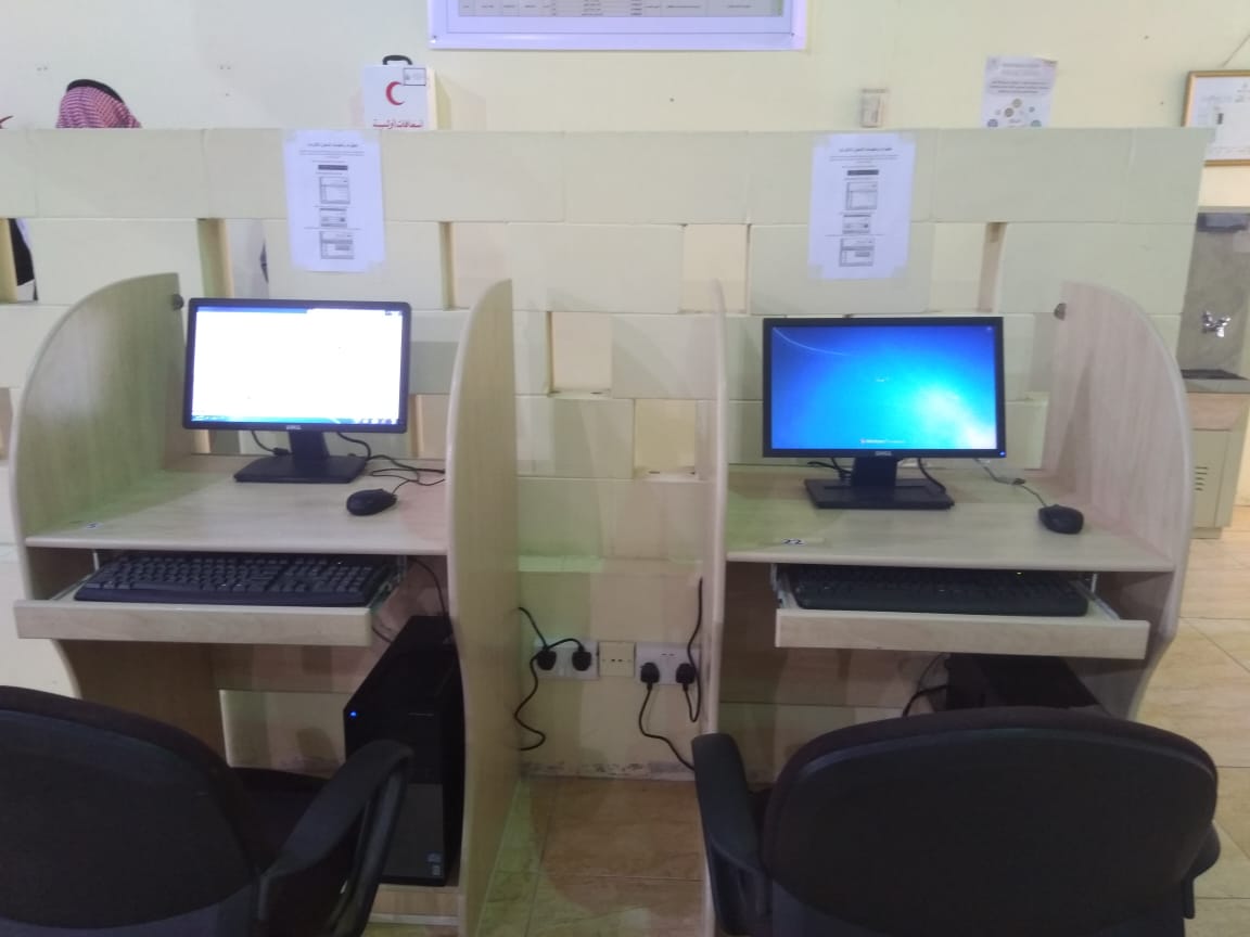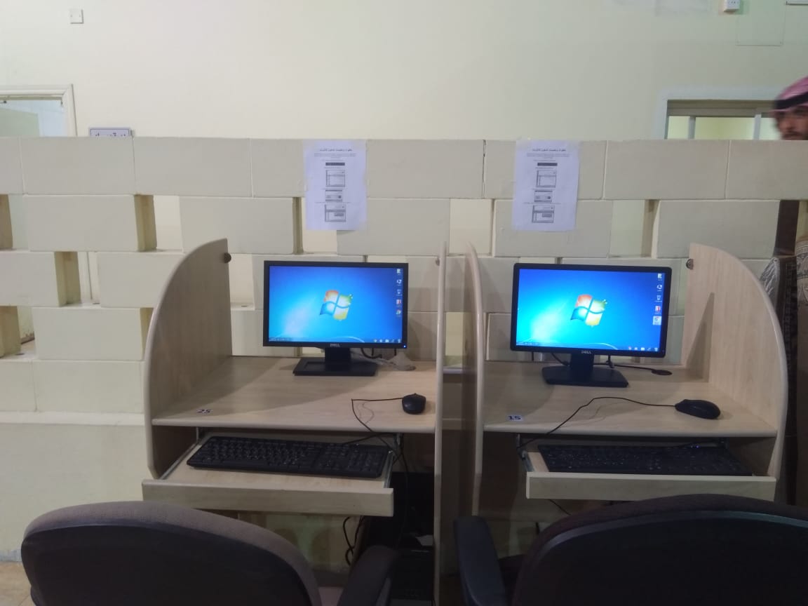 حرصًا من كلية المجتمع بالخرج على تحسين جودة البيئة التعليمية وتوفير كافة المقومات اللازمة لتحقيق تلك الجودة اتجهت الكلية إلى تعزيز الخدمات الإلكترونية للطلاب من خلال وضع (6) أجهزة حاسبات إلكترونية في أماكن مختلفة ببهو الكلية مزودة بنقاط إنترنت ذات سرعات عالية ويتوفر بها معظم البرامج المختلفة التي قد يحتاج إليها الطلاب. وقد أشار سعادة عميد الكلية الدكتور/ حمد بن عبدالله القميزي بأن توفير هذه الأجهزة سوف يساعد الطلاب في إجراء البحوث المطلوب منهم في المقررات الدراسية، ومتابعة أنشطة الكلية على موقعها الالكتروني وكذلك الدخول على خدمات الطالب المتاحة على موقع الجامعة وهو ما ينعكس بشكل إيجابي على استغلال الطالب للوقت المتاح بين المحاضرات. وقد تقدم العديد من الطلاب بالشكر والتقدير لسعادة عميد الكلية على الطفرة الحقيقة التي تشهدها الكلية في كافة المجالات والتي من أهمها توفير خدمات التغذية للطلاب، ومكتبة للتصوير، والخدمات الإلكترونية المتاحة للطلاب بشكل دائم في البهو. وحدة الدعم الفنيوحدة التعليم الالكتروني