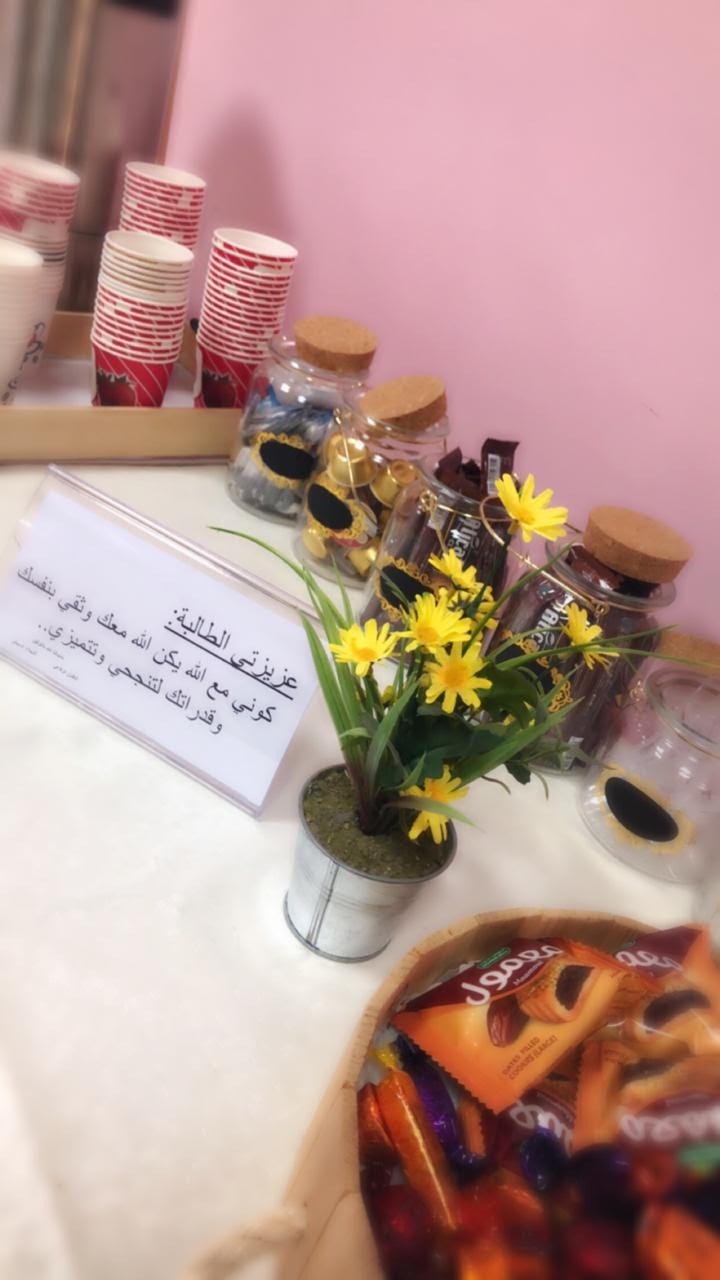 استمراراً لفترة الاختبارات النهائية لطالبات كلية المجتمع بالخرج للفصل الدراسي الثاني للعام الجامعي 1439/1440 هـ و التي انطلقت يوم الأحد 9/8/1440 هــ وتحظى بإشراف واهتمام من سعادة عميد الكلية الدكتور/ حمد بن عبدالله القميزي ومتابعة وكيلة الكلية الدكتورة / أمينة عبدالرحمن المشحن، حيث تم التأكد من الاستعدادات اللازمة لبدء الاختبارات ،والاطلاع بشكل مباشر على سير الاختبارات بالقاعات الرئيسية للامتحانات، وكذلك التشديد على التزام الطالبات بالتعليمات الصادرة للاختبارات ونصحهم بالجد والاجتهاد، ليقطفوا ثمرة جهدهم خلال هذا الفصل.كما بادرت كلا من أ/أفنان الرفاعي أ /نجلاء السبيعي بعمل ركن لتهيئة الطالبات قبل دخول الاختبار وذلك لكسر الرهبة من الامتحان ..حيث أحتوى الركن على منشورات تحفيزيه للمذاكرة واحتوى على بعض المأكولات والمشروبات الساخنة.كما اشارت الاخصائية الاجتماعية أ/افنان الرفاعي الى ان ما يصاحب فترة الاختبار من توتر وقلق للطالبات. ما هو الا شعور طبيعي ويجب تهيئة الطالبات للاختبارات بتخفيف التوتر والتوضيح لهن ان الاختبار ما هو الا مرحلة قياس ومراجعه لما تمت دراسته وبالتوكل على الله والاستعانة به مع الجد والاجتهاد يتحقق النجاح .